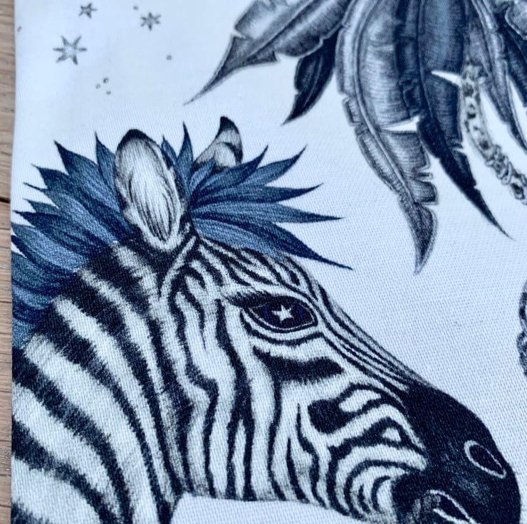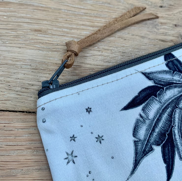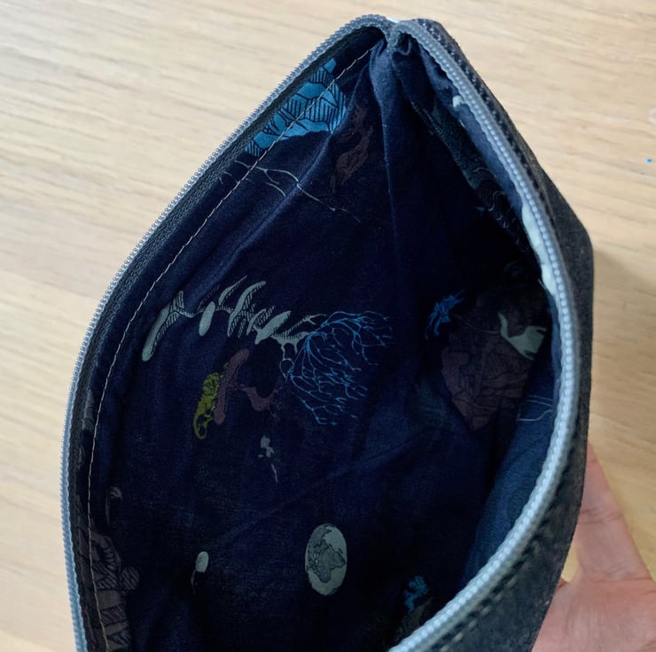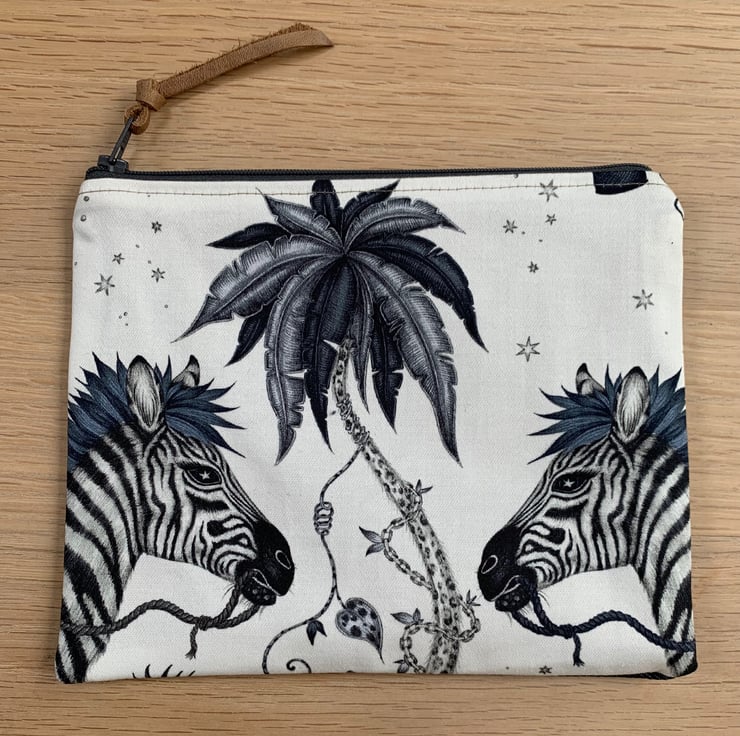 Handy zip pouch in Emma J Shipley Lost World cotton, backed with dark denim and lined with Paul Smith cotton.