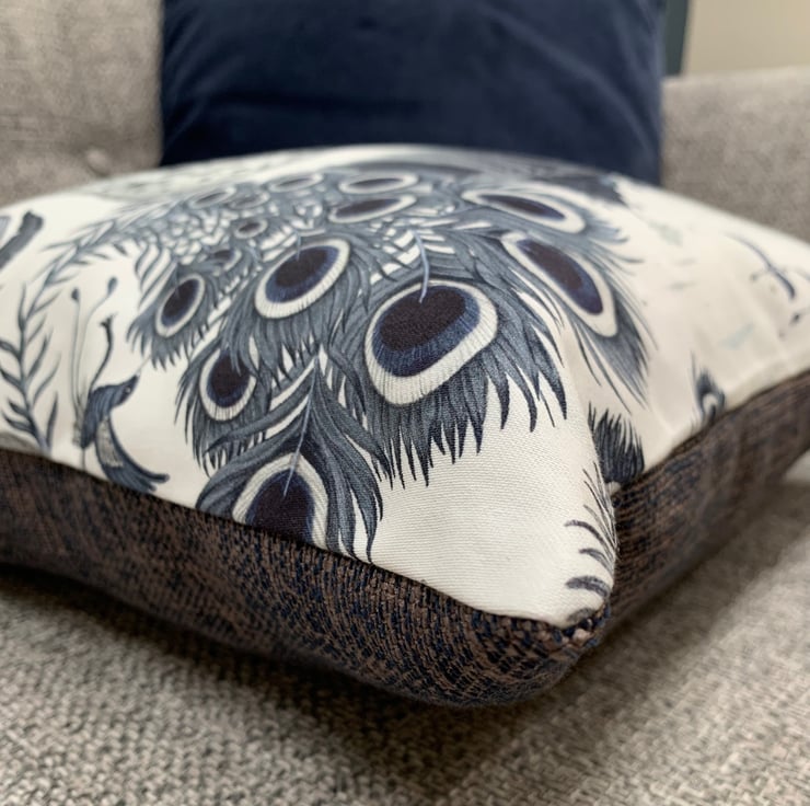 I have backed it with a thick woven fabric which picks out the deep inky blue of the pattern. The cover fastens with a zip in the bottom seam.