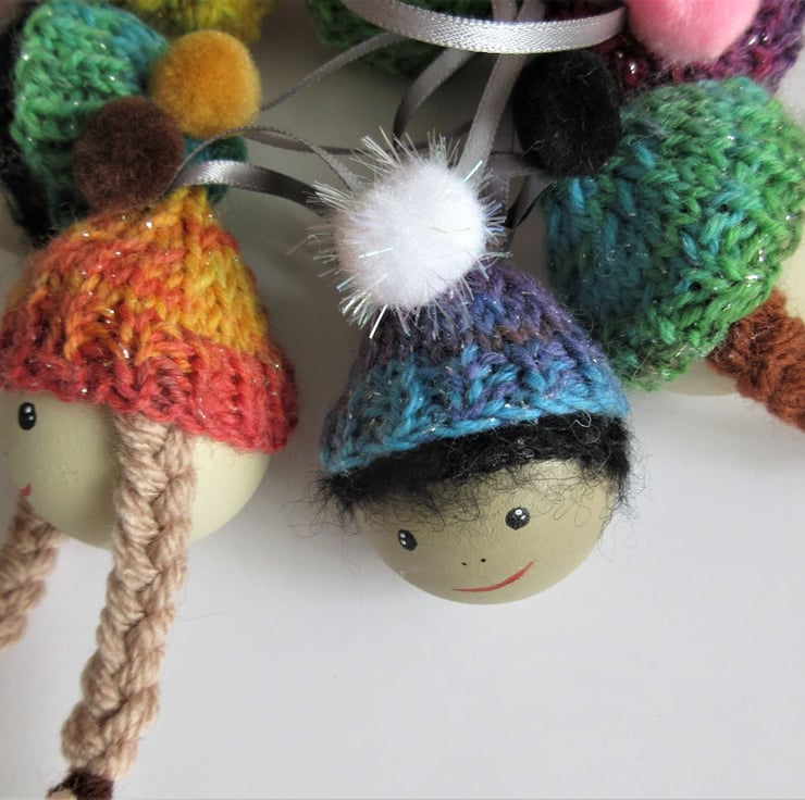 Bobble Hat Christmas Folk Bauble Hanging Tree Decoration in Woolly Hat
