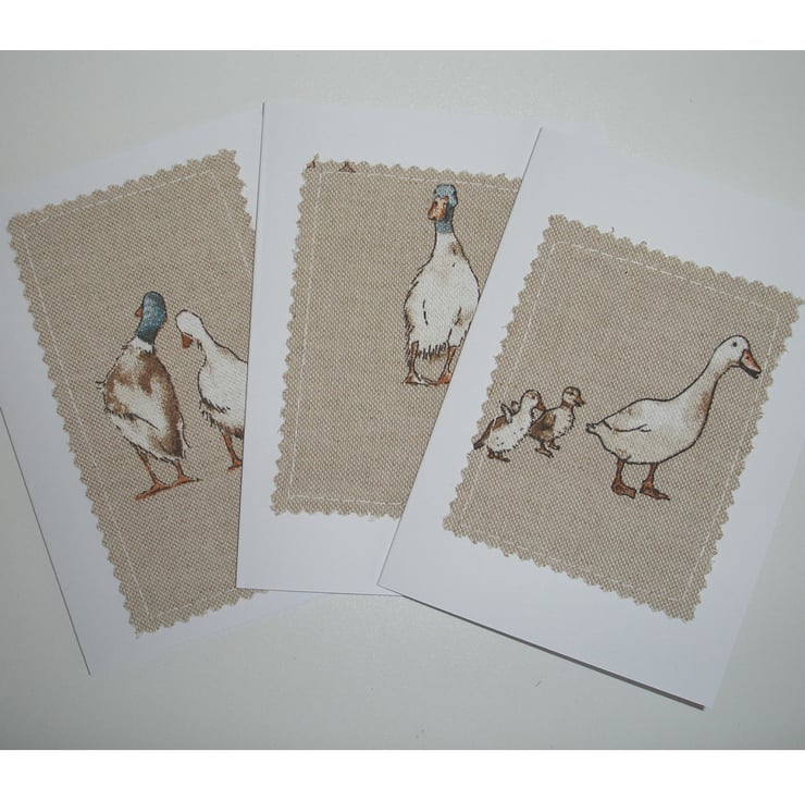 Cards x 3 Ducks and Ducklings Greeting Card Pack of Notelets Fabric Sewn