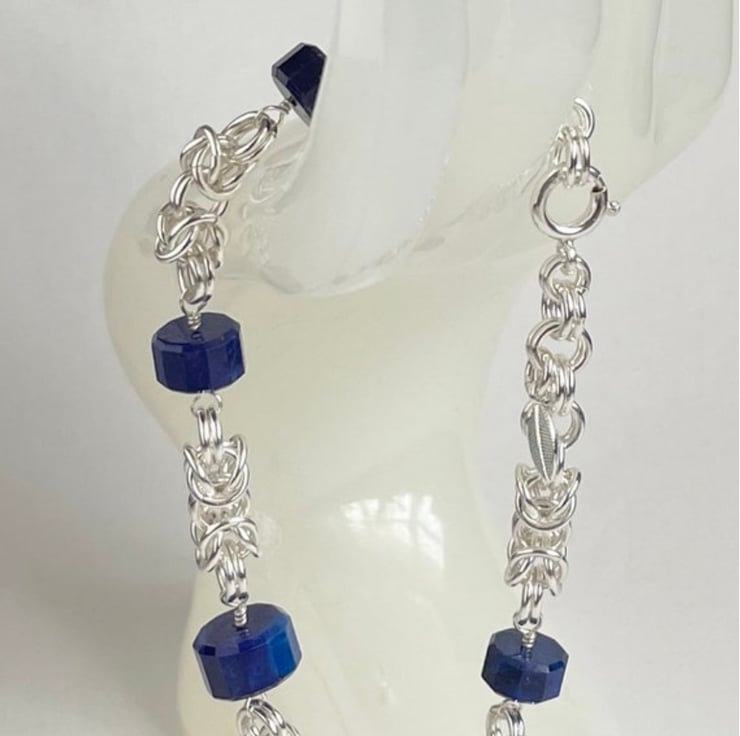 Lapis is an attractive blue colour and looks stunning in this chainmaille necklace.
