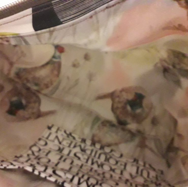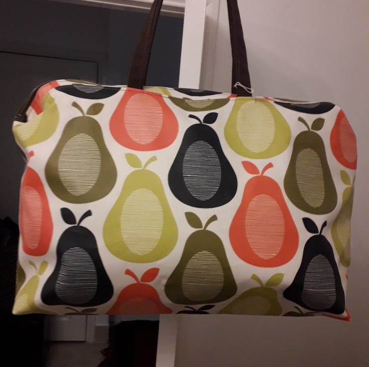 The bag is made from oilcloth and is waterproof with an oilcloth lined inner. The pattern is Orla Kiely's "pears" bag. Inside the bag also has an inner pocket.