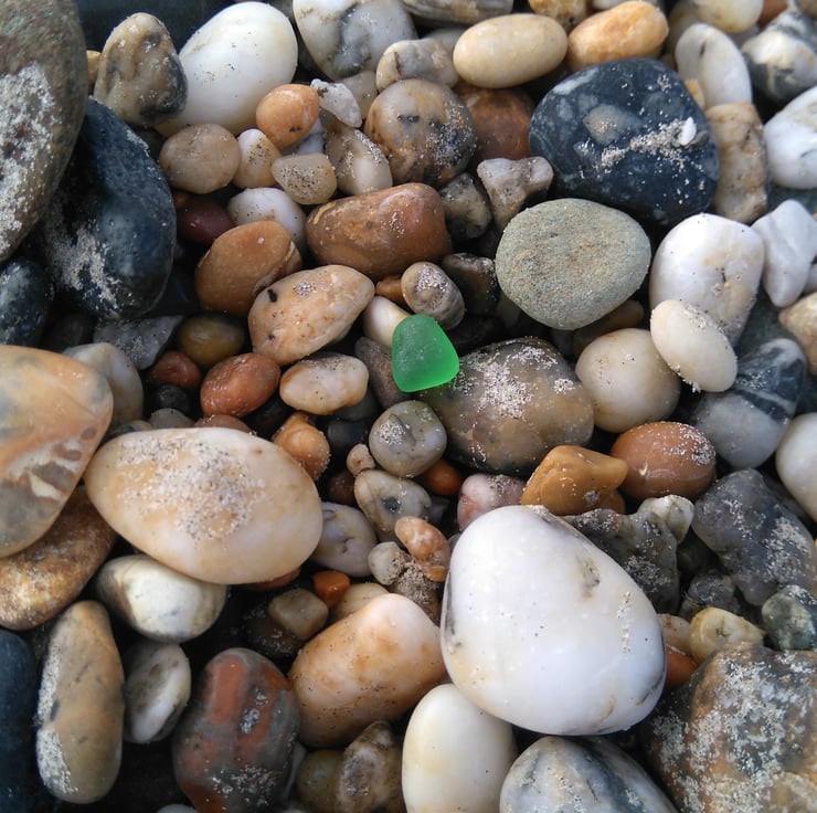 Sea glass comes in many colours, the most common being sea foams (light green/blue), greens, whites, ambers and blues; rare colours are reds, purples, yellows, pinks, oranges and blacks.