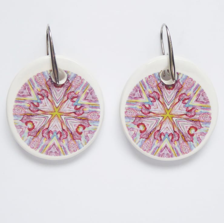 Handmade Geometric Pattern Ceramic Earrings with Silver Coloured Ear Wires