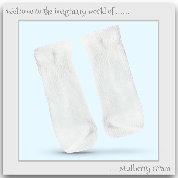 A little pair of white socks imprinted with little hearts to fit the Mulberry Green characters. The tights look lovely with the little felt shoes.