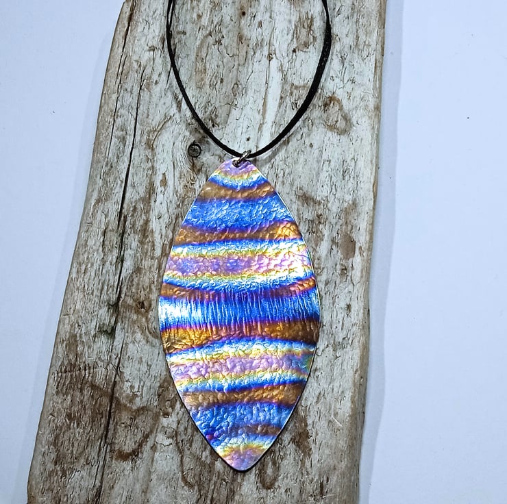 Titanium displays a range of attractive shades which really come to life when it catches the light. Lovely as 'tree jewellery' at Christmas and year round as a beautiful sun catcher.