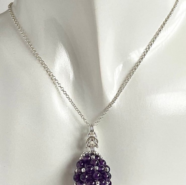 There are over 40 gemstones in the egg which have sterling silver round beads between the gemstones.