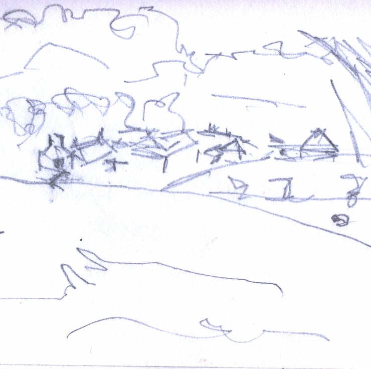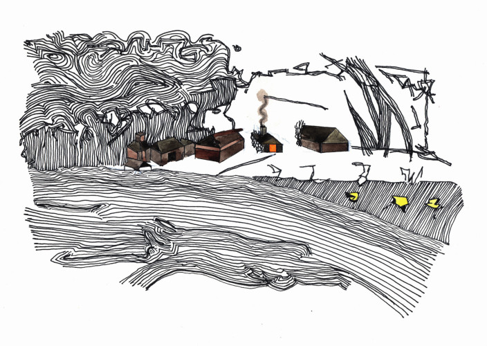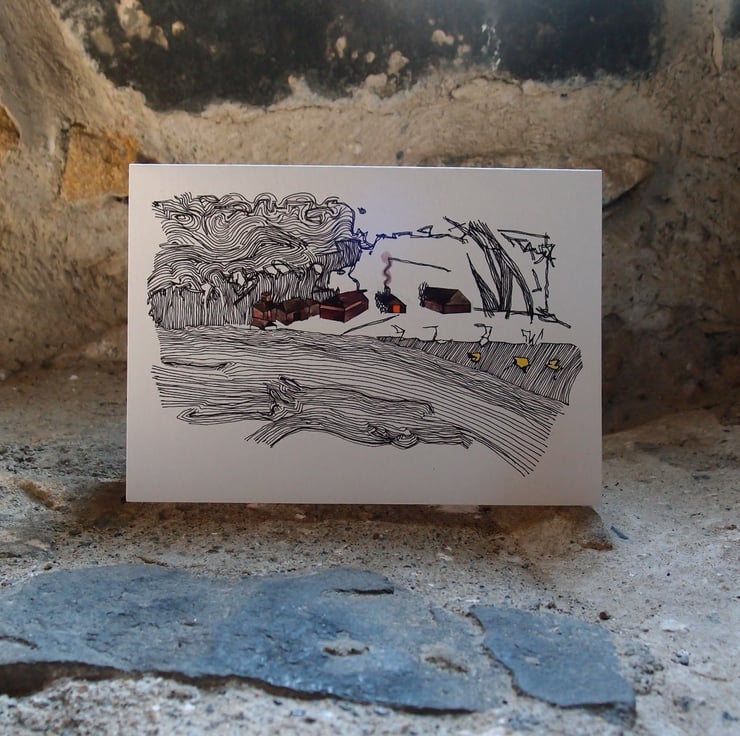 This image is part of a series of four Christmas cards based on sketches I made when visiting the north of England that have a wintry theme. I drew the original sketch when we were walking along Hadrian's Wall Path in Northumberland in January 2015. At the time I thought I might develop this image and here is the result nearly seven years later.