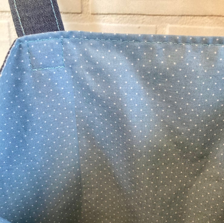 Tote bag with pockets made from lightweight denim and fabulous patterned cotton.