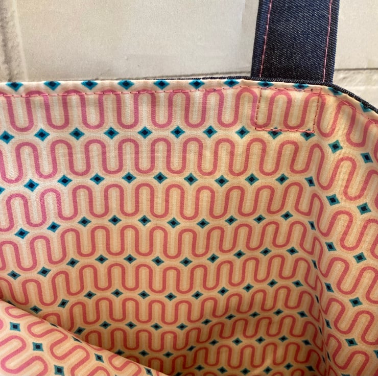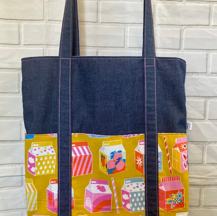 Tote bag with pockets made from lightweight denim and fabulous patterned cotton.