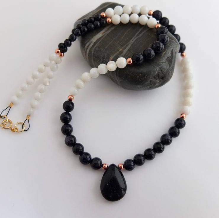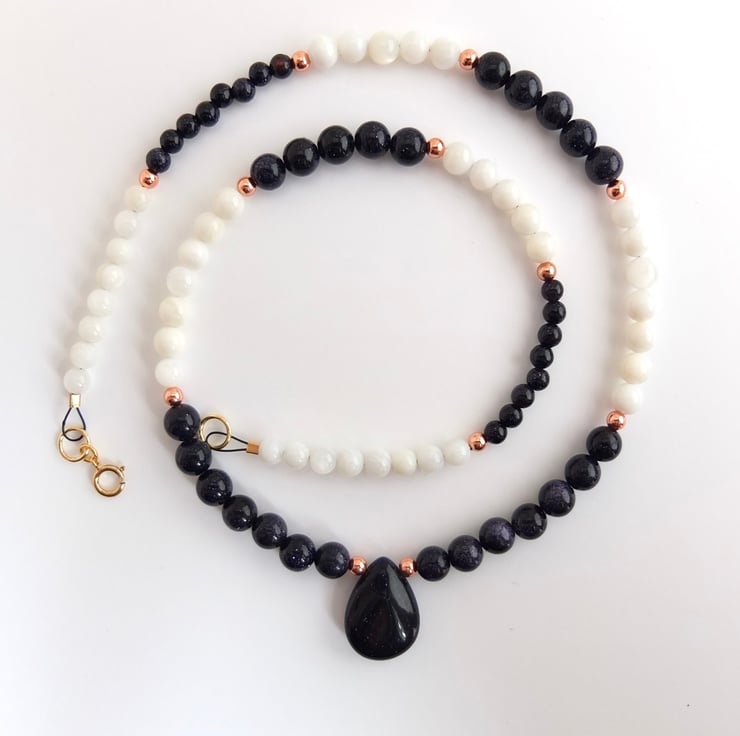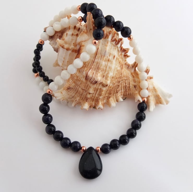 Despite being manmade, rather than a natural gemstone, blue aventurine glass is remarkably beautiful with its midnight blue colour and sparkle of a thousand stars.
