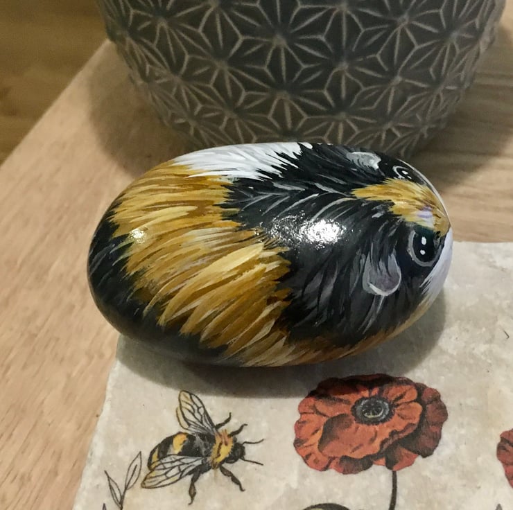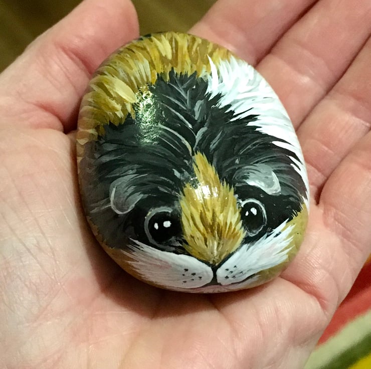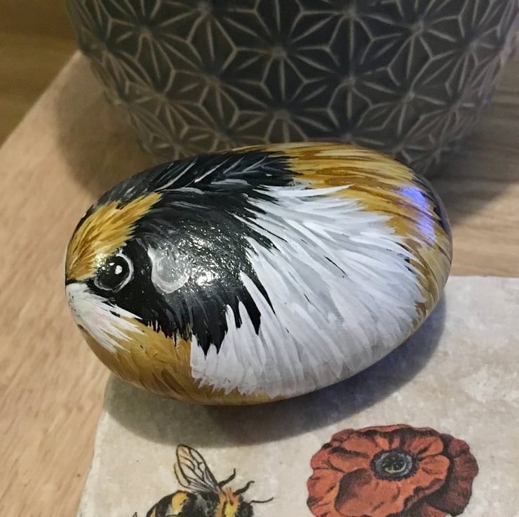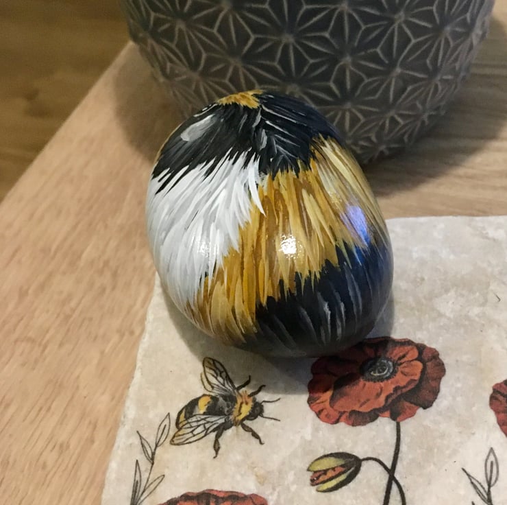 This stone has been painted using acrylic paint and glazed for a glossy protective finish. It will be sent second class signed for within the UK