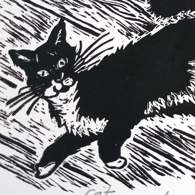 I have always loved black and white cats. As a printmaker working mainly in black and white they are the perfect subject!