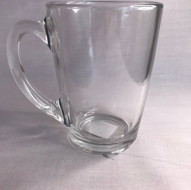 Size of glass mug, diameter 82mm, diameter with handle 115mm, height 110mm, weight 315g, maximum capacity 320ml.