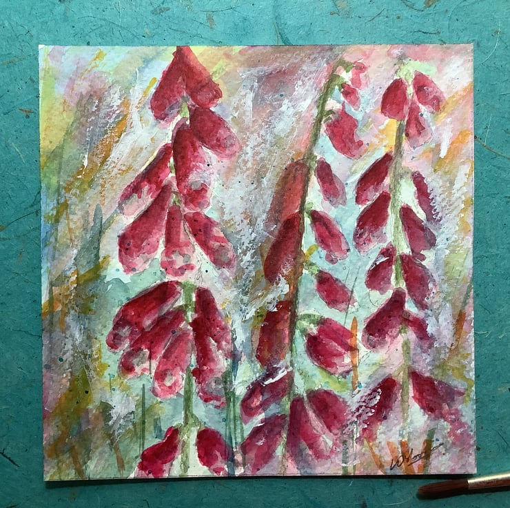Foxgloves - original watercolour and mixed media painting of flowers..