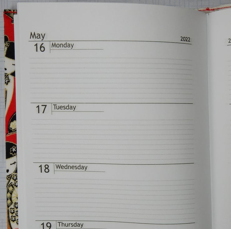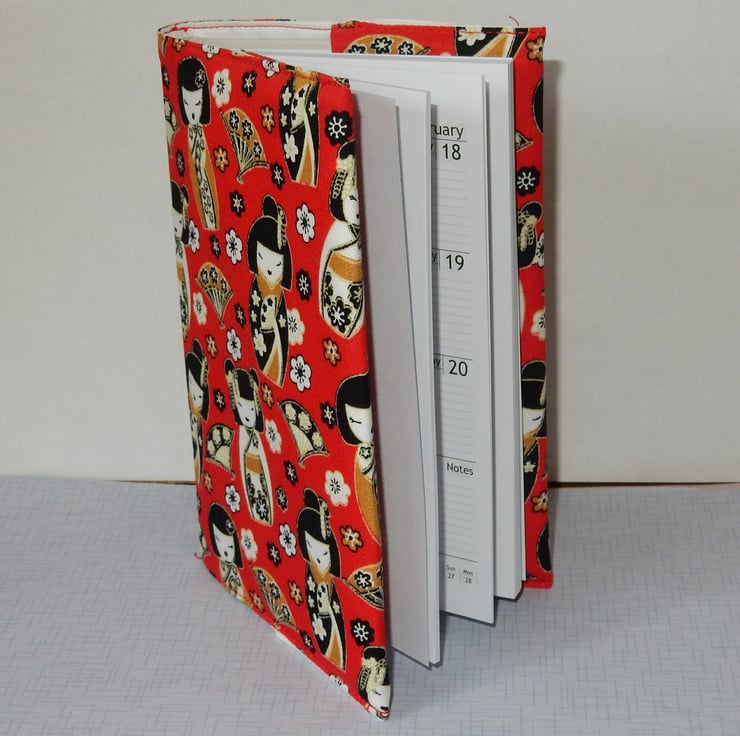 This fabric covered diary for 2022 features beautiful Japanese ladies in their traditional Geisha costumes, with pretty fans and flowers. It measure 6 x4 inches (15.5 x 10cm) and is week to view style. The cover is removable and refills are easily available, for the following year. The cover is lined and interfaced and it would make a great gift.