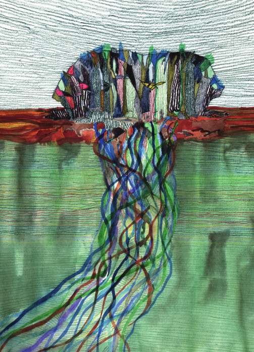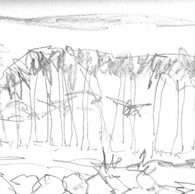 I drew the original sketch of a stand of trees when we were walking along Hadrian's Wall Path in Northumberland in January 2015. I was impressed by the shape of the trees in the winter landscape and all these years later I finally got around to developing the sketch and this is the result.