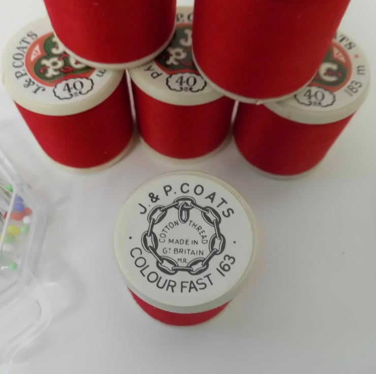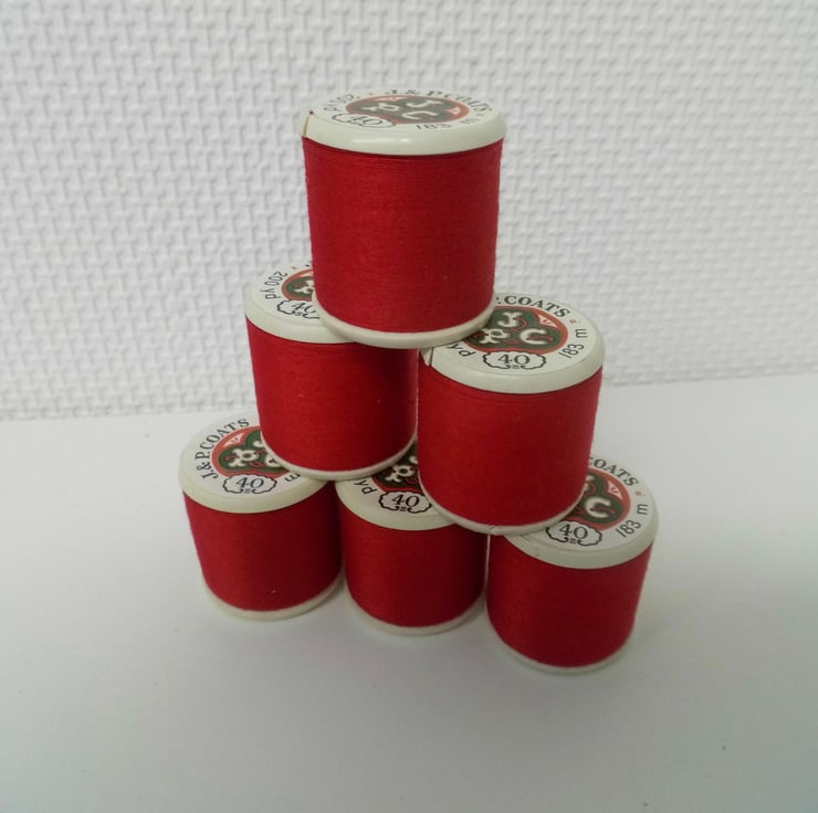 6 reels of cotton thread made by J&P Coates in Great Britain