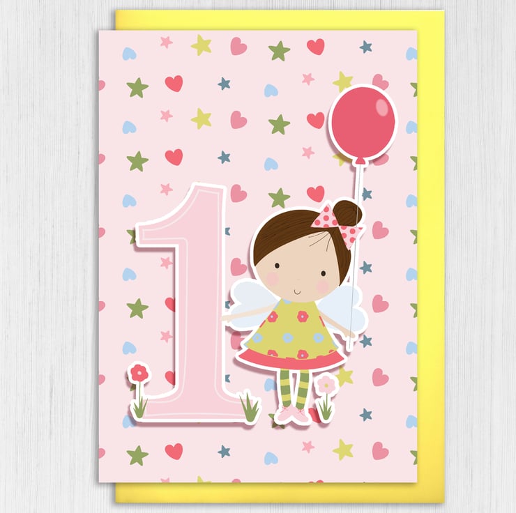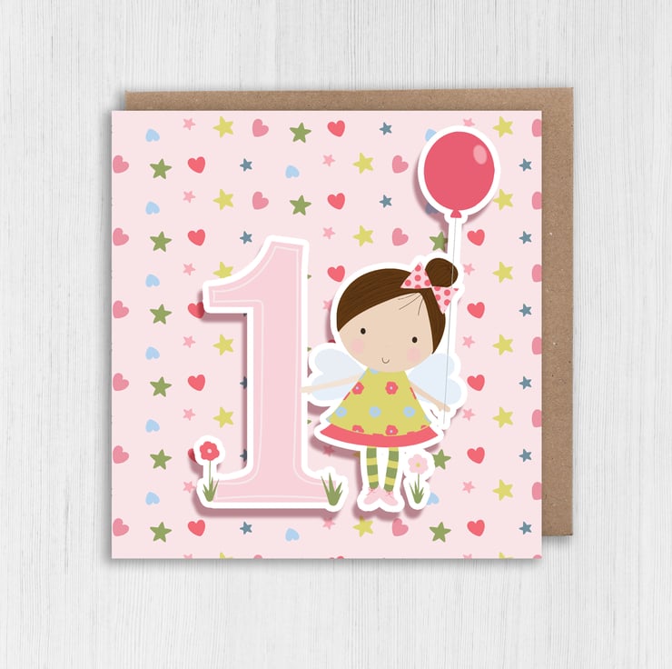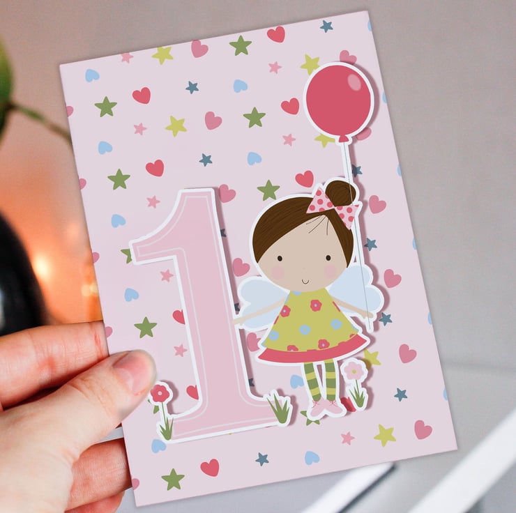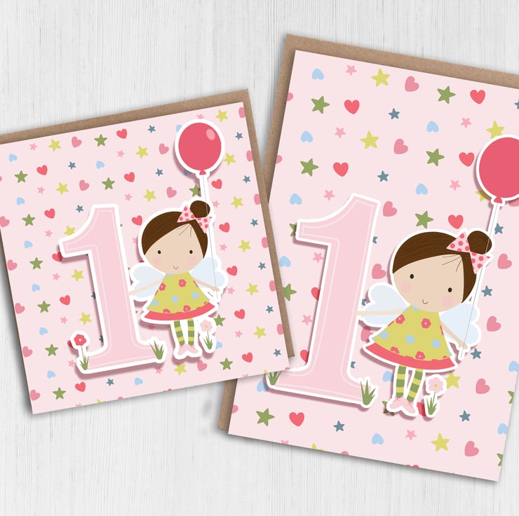 Fairy children, kid, child, boy, girl 1st birthday card (Size A6/A5/A4/Square 6x6")