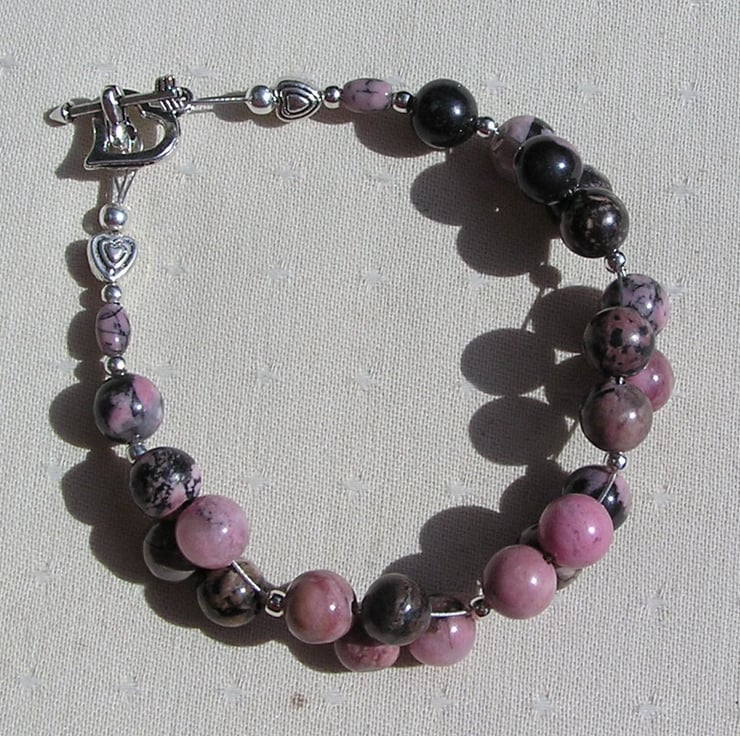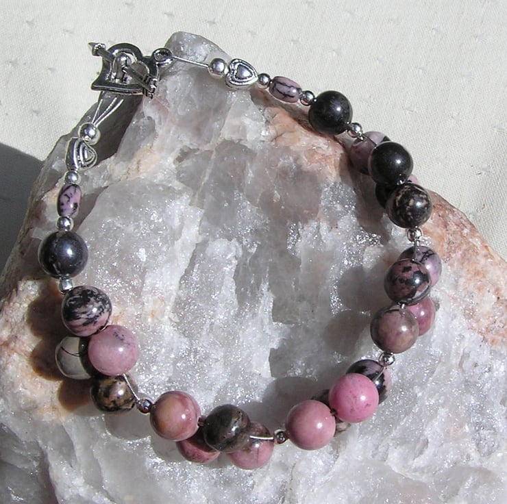 Pink & Black Rhodonite Gemstone Bracelet