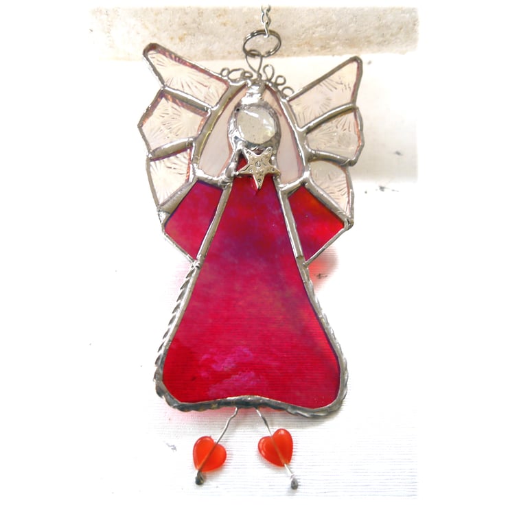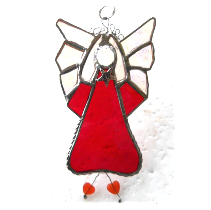 This is a bright red angel. with her dress cut from lovely iridescent red glass.