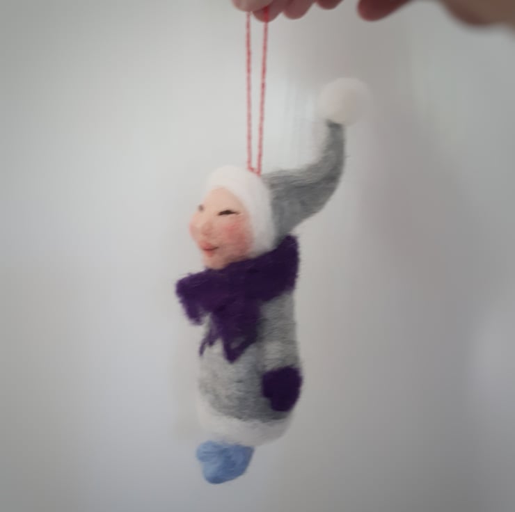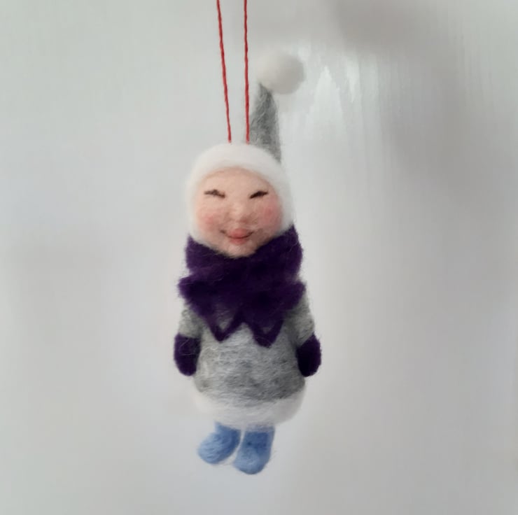 Baby elf, Eskimo child, Quirky ornament, Hygge winter decor, Needle felted pixie