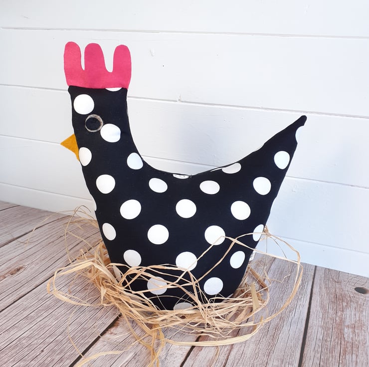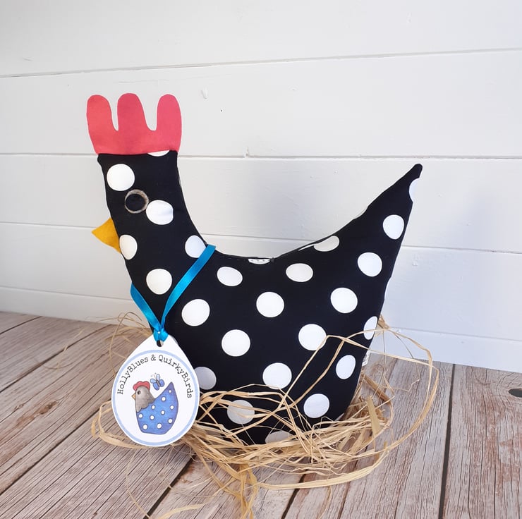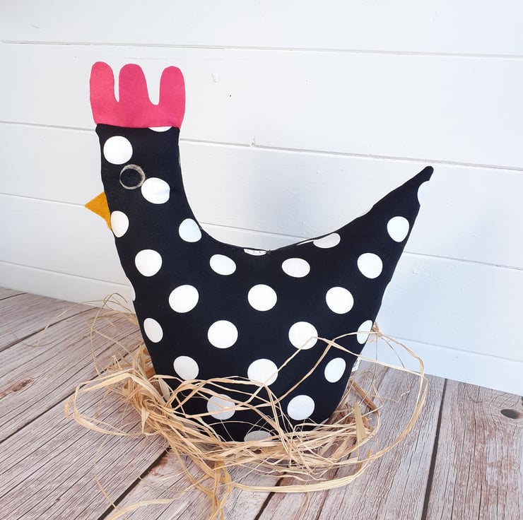 Each chicken is happily handmade by me from bright beautiful fabrics, carefully chosen so that each one has a unique character.