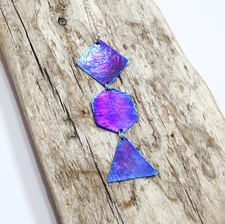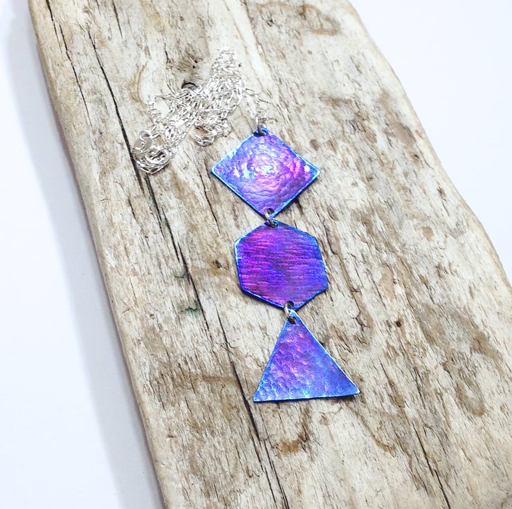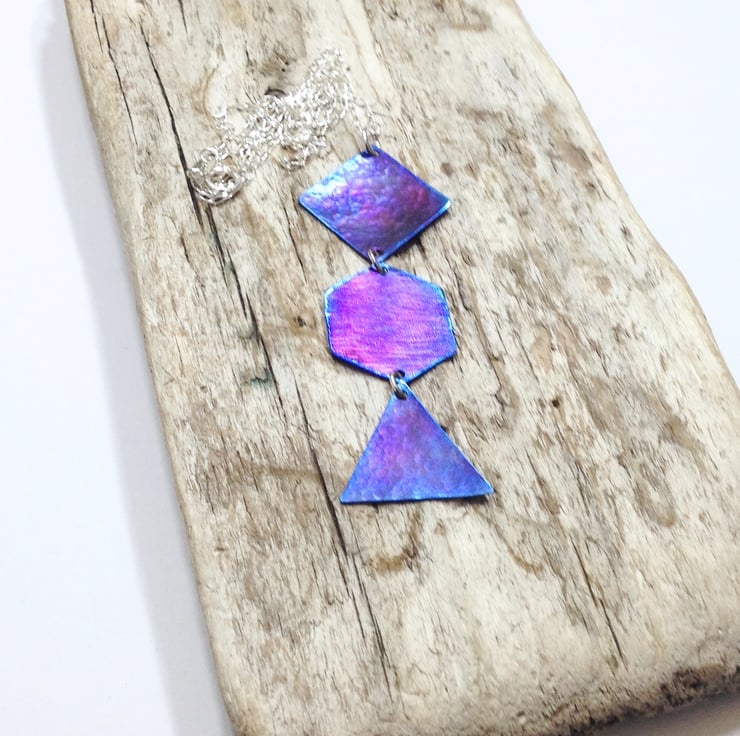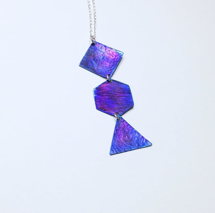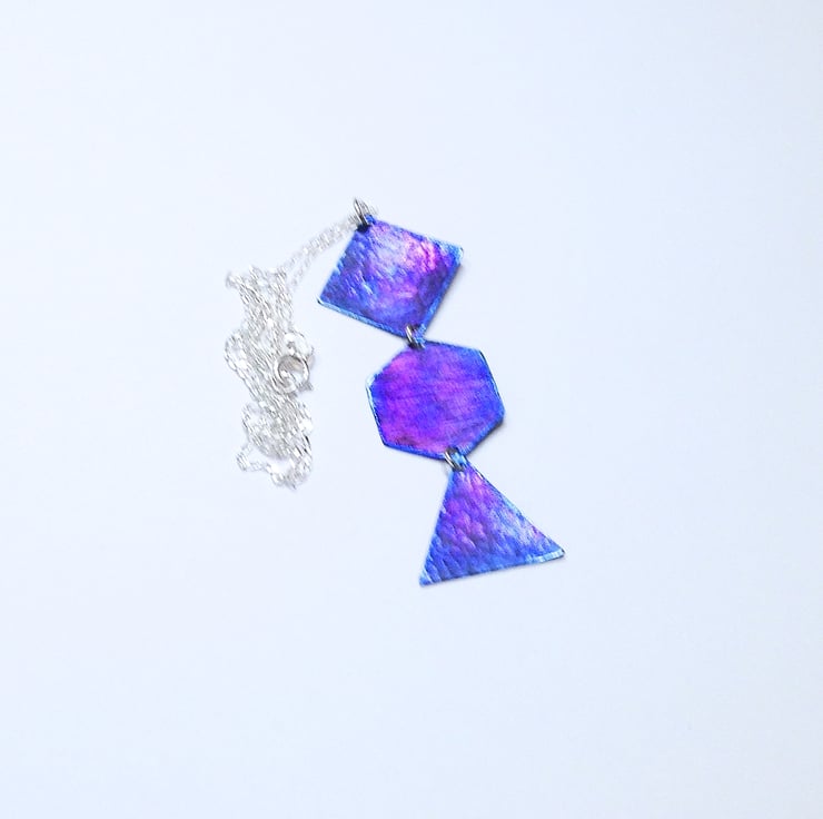 This titanium pendant necklace displays a range of attractive colours which really come to life when it catches the light.