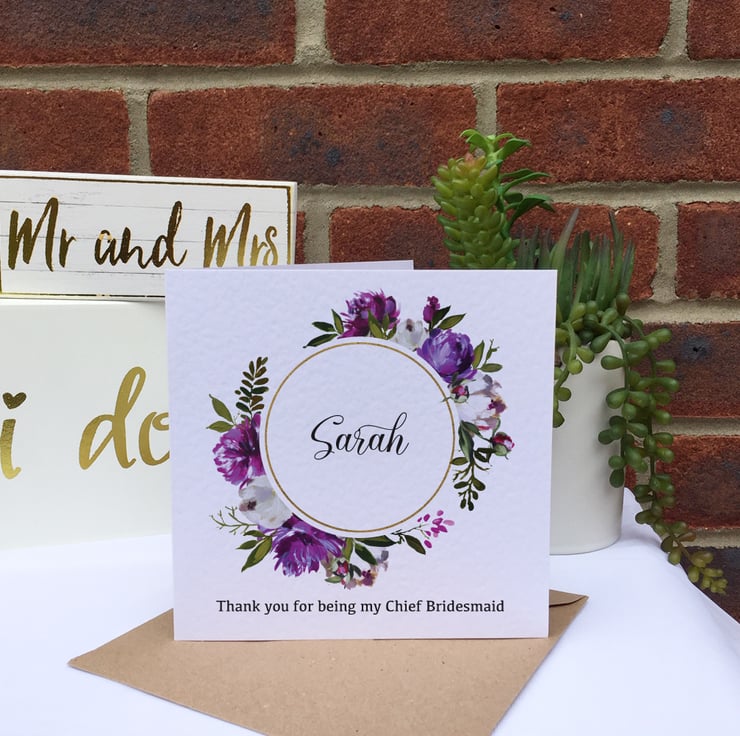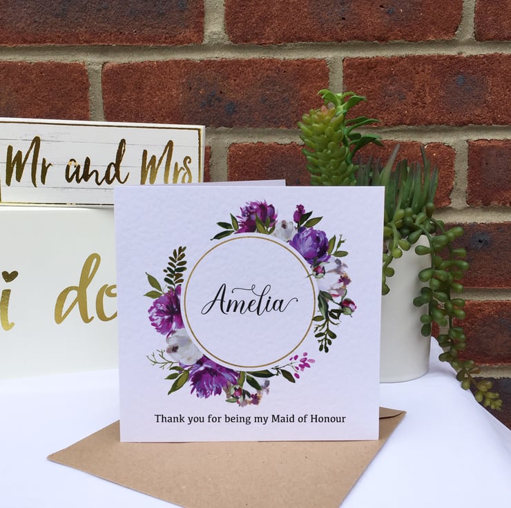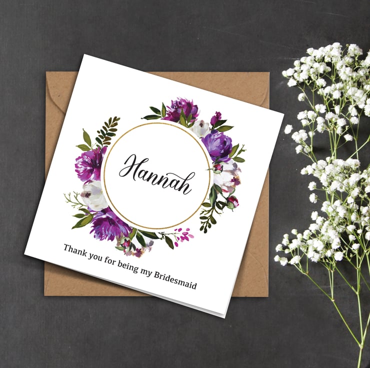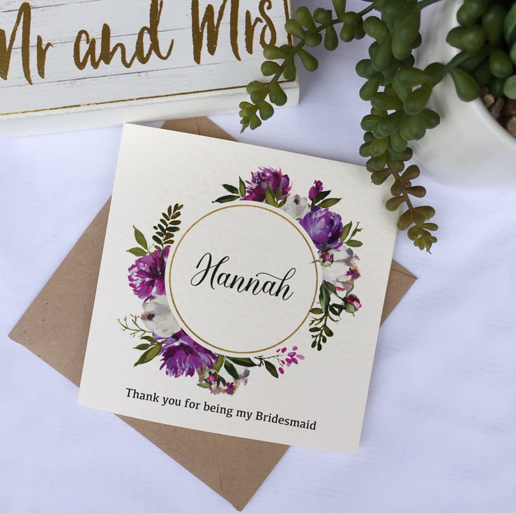 PERSONALISED purple watercolour peonies and golden rings wreath design wedding stationery cards including: