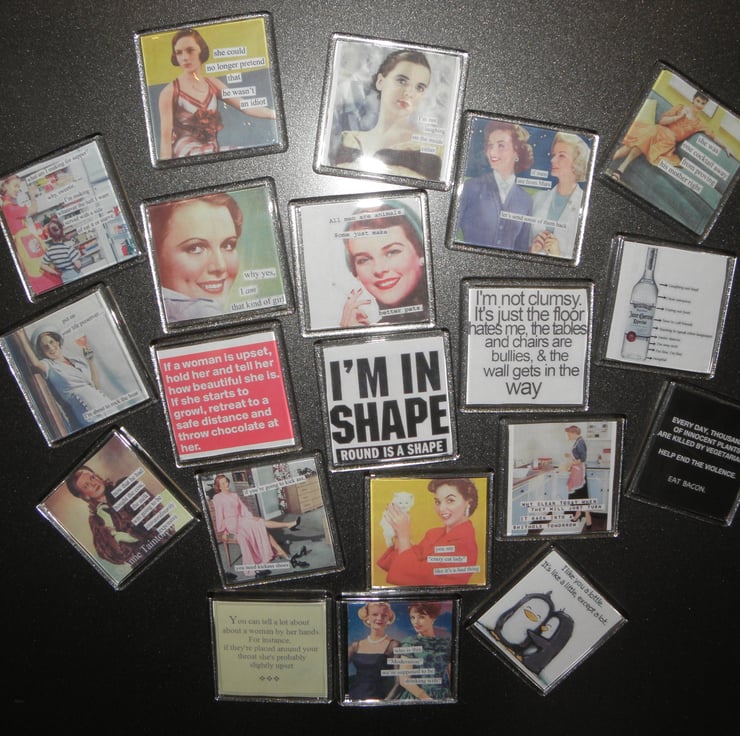 Everyone needs something to get them through the day. Whether it's a bit of inspiration, advice, or just a giggle. I thought these magnets make a lovely, inexpensive gift to spread a bit of cheer...