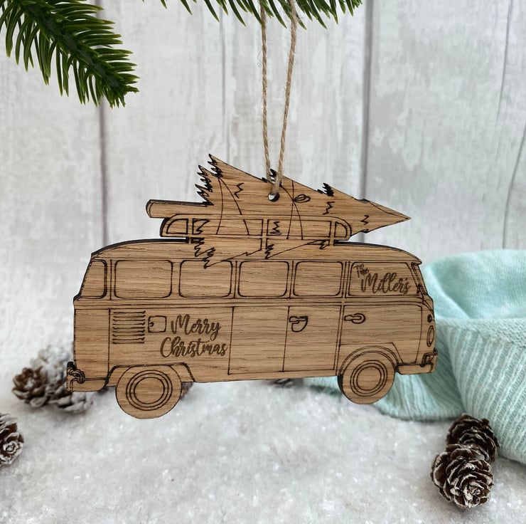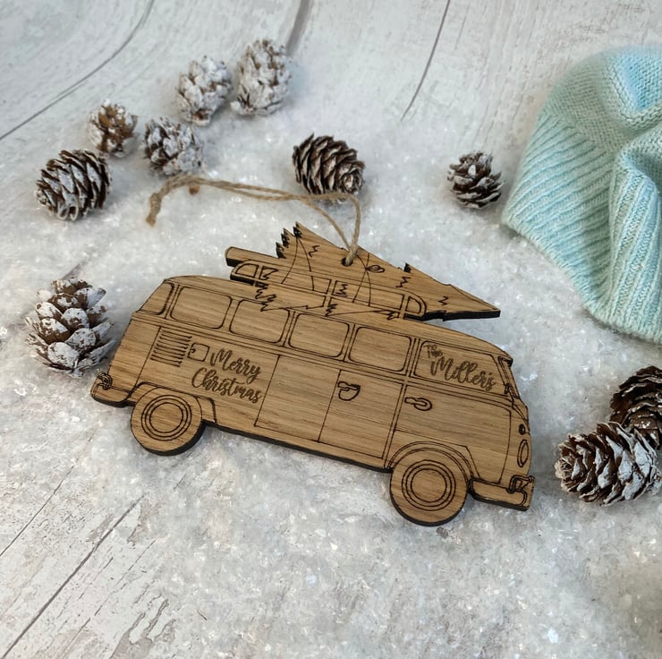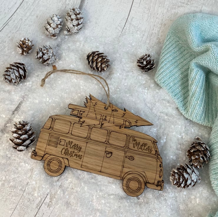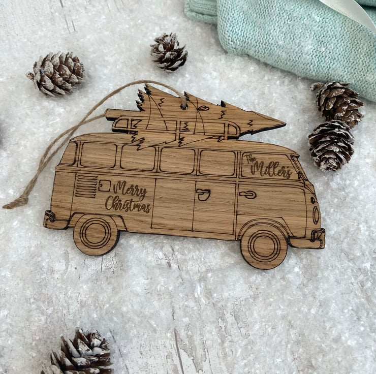 Personalised with your chosen name, each Campervan is strung with twine so its ready to hang on the Christmas tree.