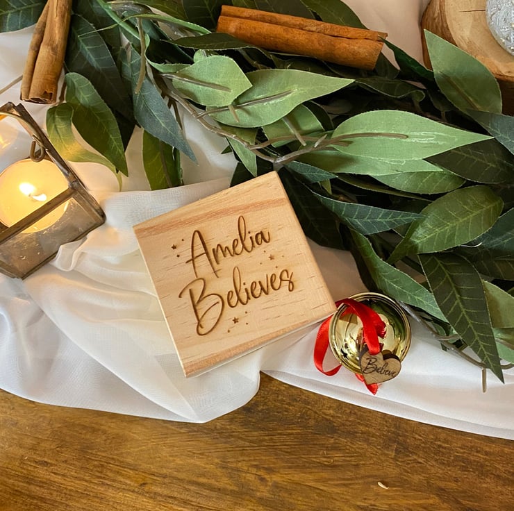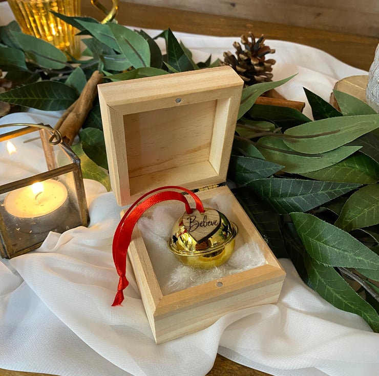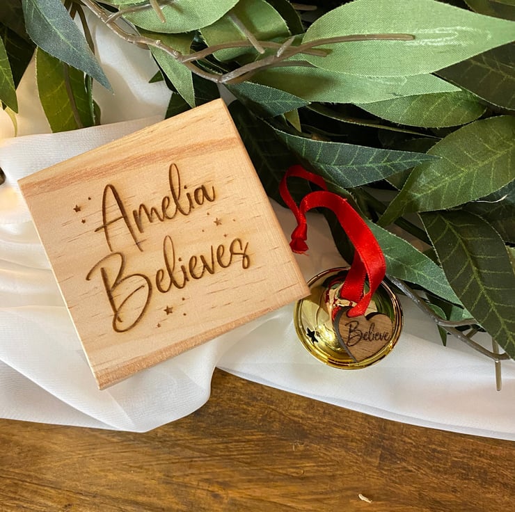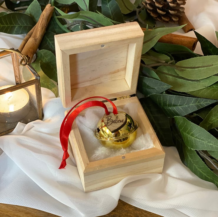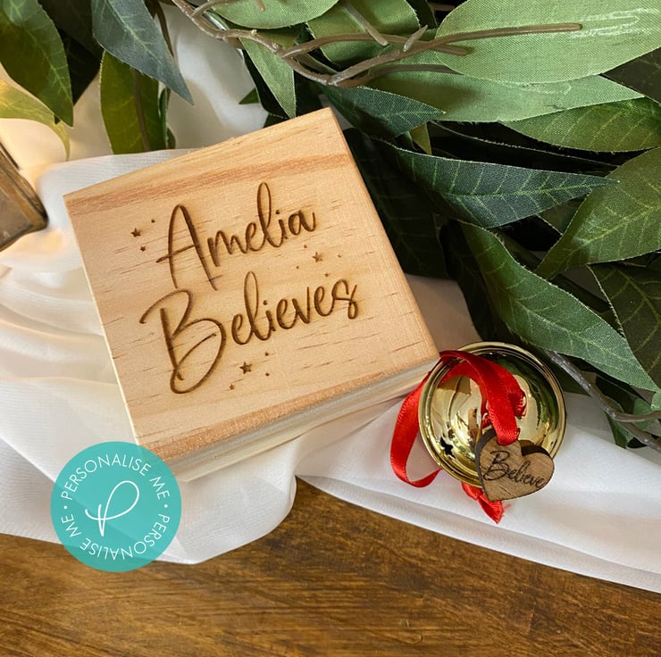 Inspired by The Polar Express, bring some magic to your child's Christmas this year! Considered 'The First Gift Of Christmas', our beautifully personalised 'Believes' named box, come complete with a shiny gold sleigh bell and a little personalised note saying 'I Believe In You too' Love Santa.