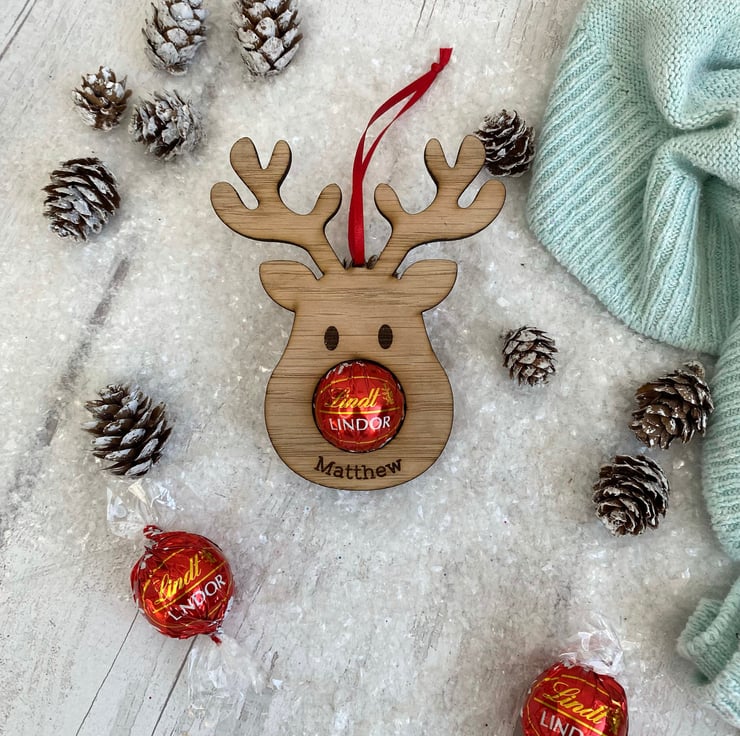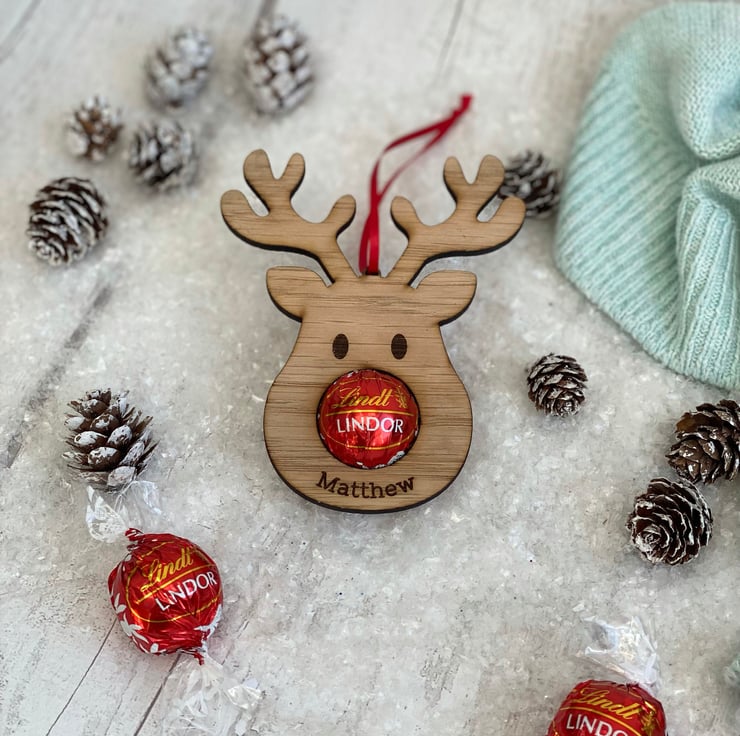 Our fun personalised Lindt Chocolate Rudolph decorations are a wonderful gift for children, grandchildren, friends, family and even make a fab secret Santa gift.