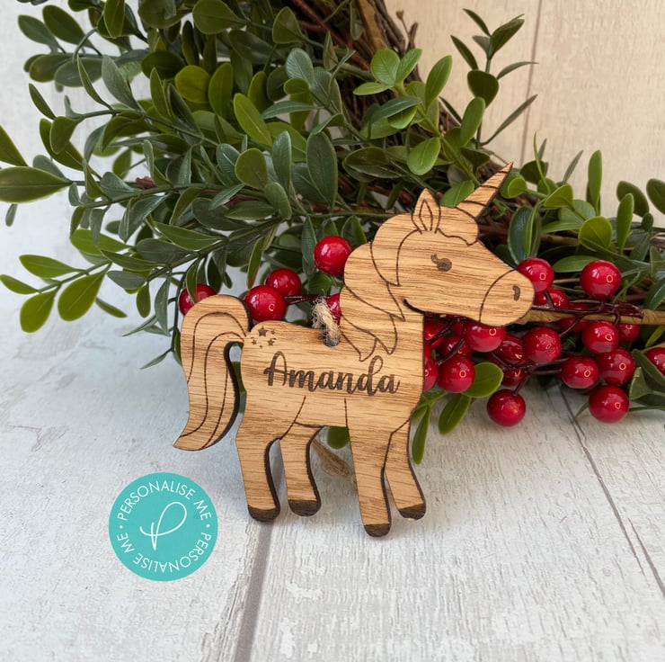 Personalised with your chosen name, each Unicorn is strung with twine so its ready to hang on the Christmas tree.