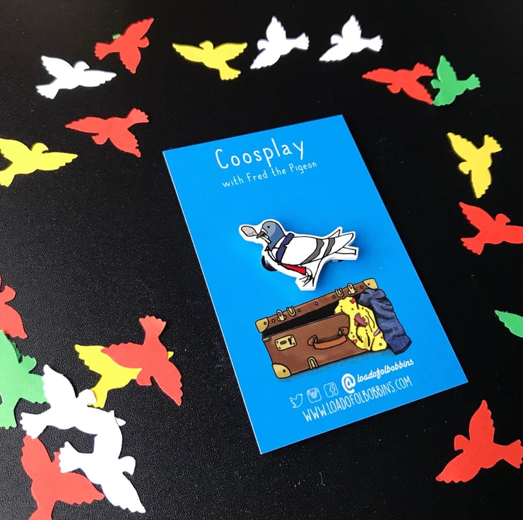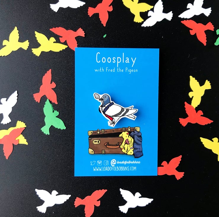 Would you look at that my old pigeon friend has raided the fancy dress again, once more paying homage to his favourite time traveller. I have created a range of fun lapel pins taken from my original Dr Coo Illustration, perfect for fans of pigeons or time travellers alike.
