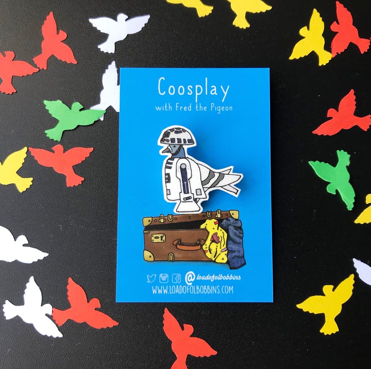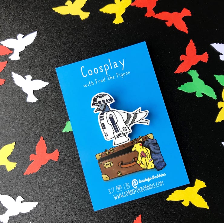 My illustrated pigeon friend is a huge fan of coosplay, this time he's immersed himself in the wonderful world of classic Sci-Fi. I have created a range of fun brooches taken from my illustrations, perfect for fans of pigeons or space adventures alike.