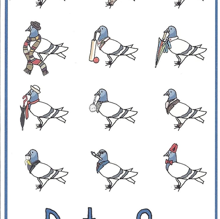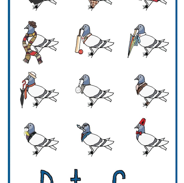 My illustrated pigeon friend is a huge fan of all things time travel, here he can be seen paying homage to his favourite time traveller of them all.