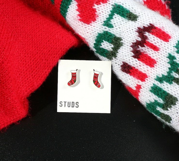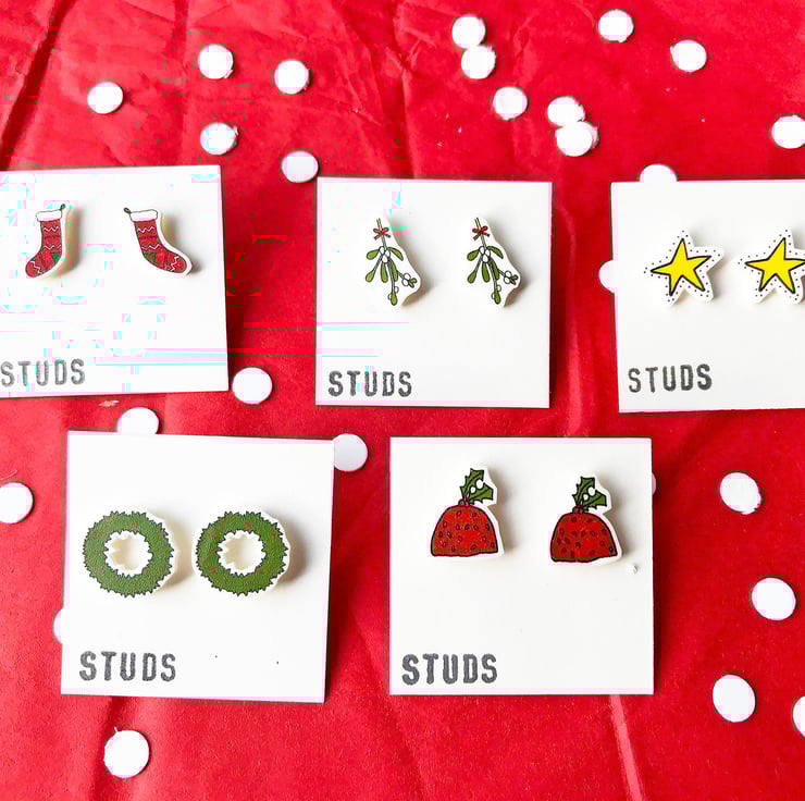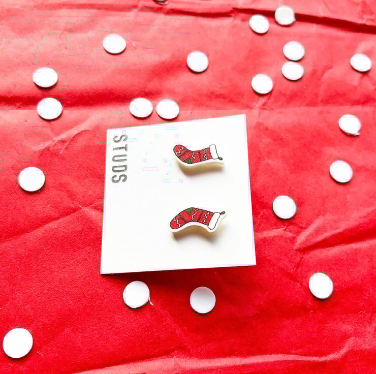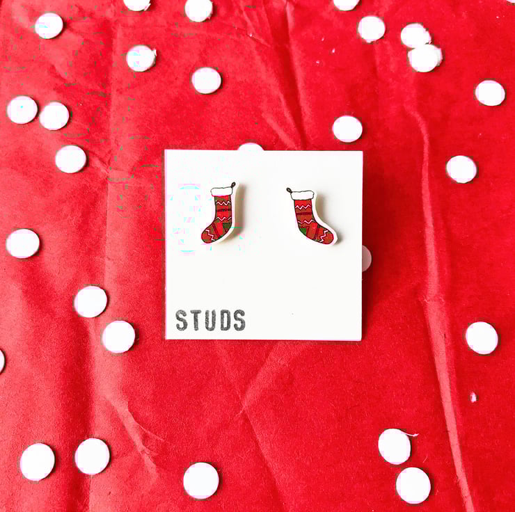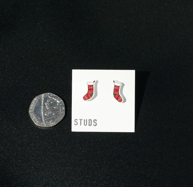 These teeny tiny stocking earrings may not fit many presents in them but they'll look cute on your lobes this Christmas! From my original illustrations I have created a range of fun studs, perfect for fans of the festive season. This is an end of line item.