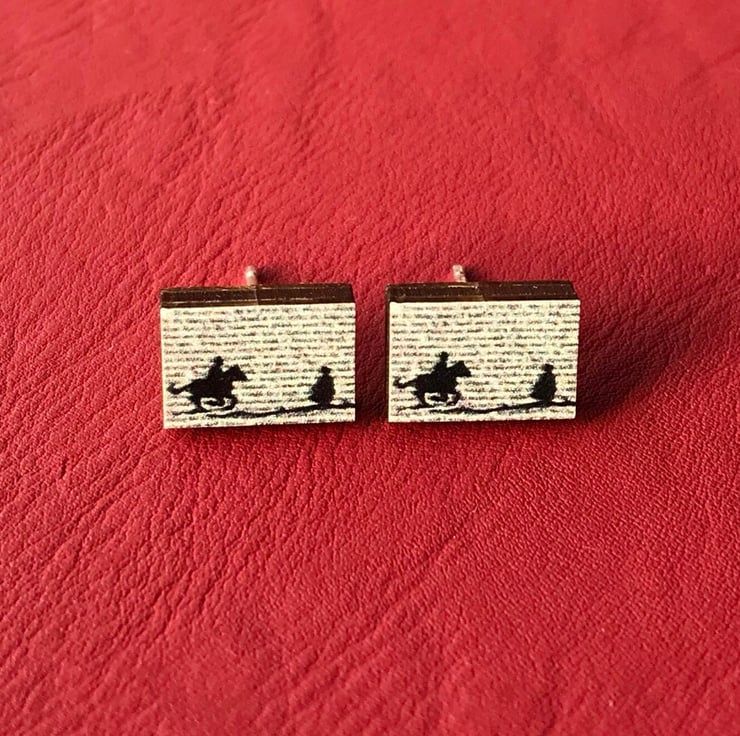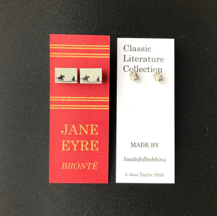 This cute pair of wooden studs show the iconic first meeting between Mr Rochester and Jane Eyre in Charlotte Bronte's classic novel. The images are created from my original embroidered illustrations, this range of earrings are perfect for book lovers like myself. They'd make a lovely gift or maybe even a treat for yourself!
