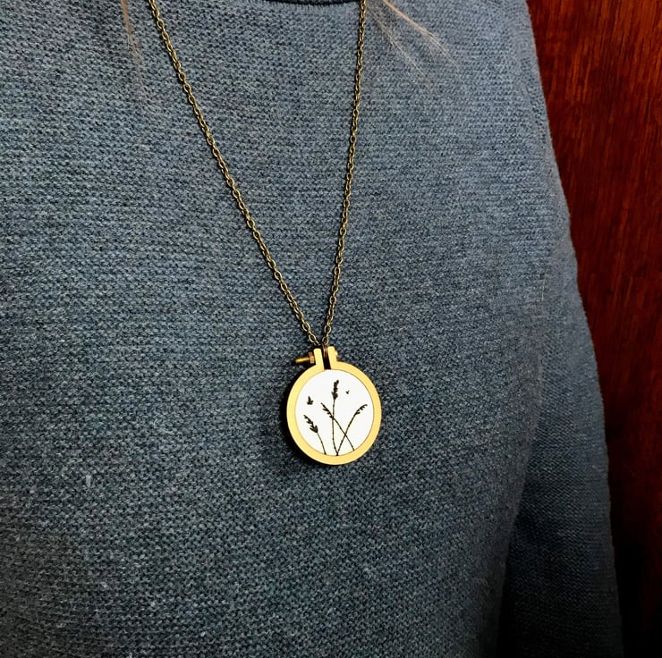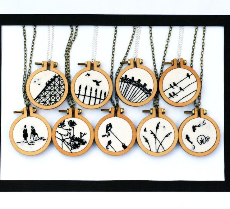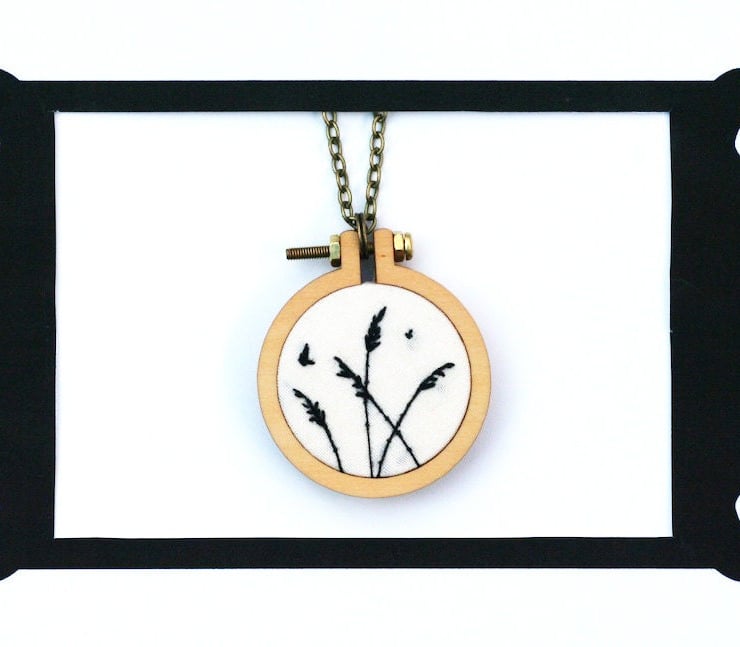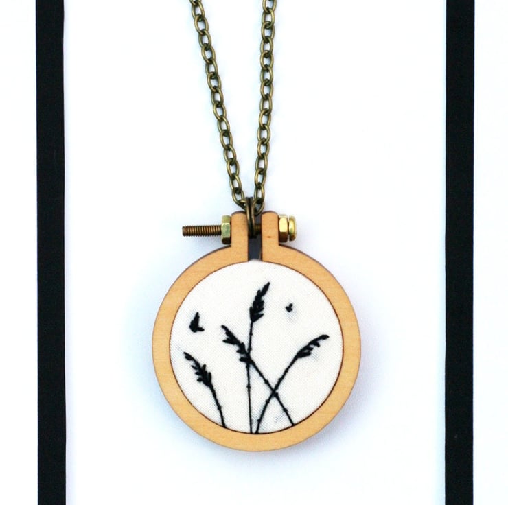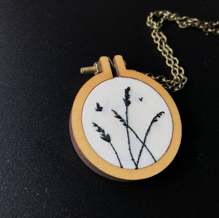 This teeny silhouetted meadow scene has been delicately stitched by me using a single strand of embroidery floss. Inspired by my love of silhouettes I have created this range of intricately hand embroidered necklaces, each one a piece of wearable art for you to enjoy.