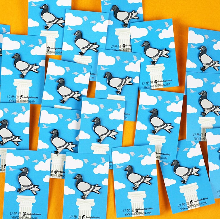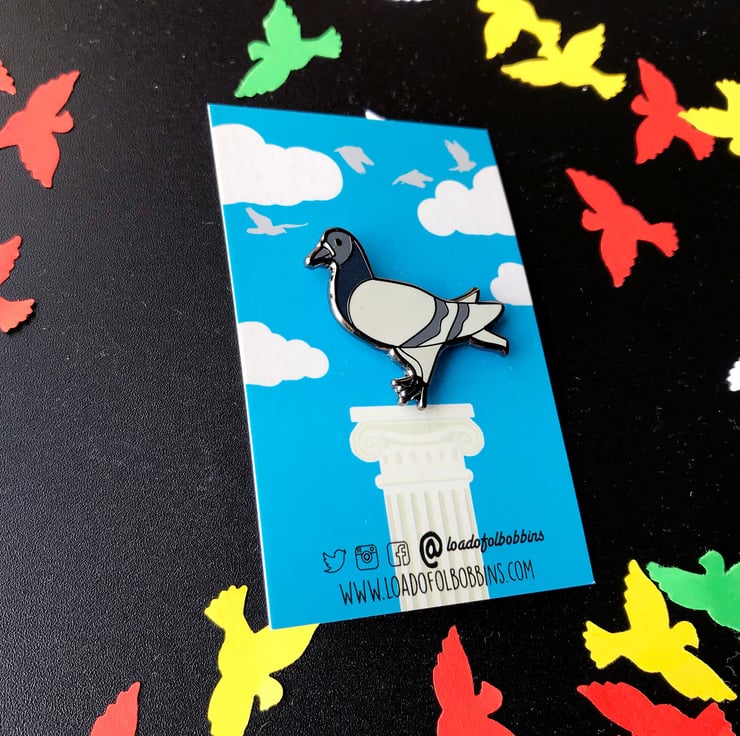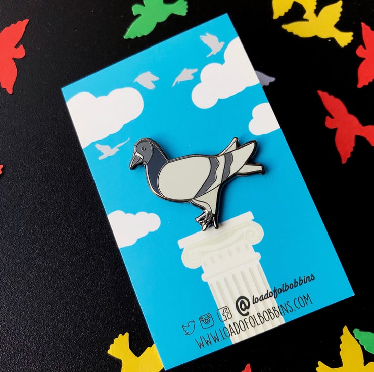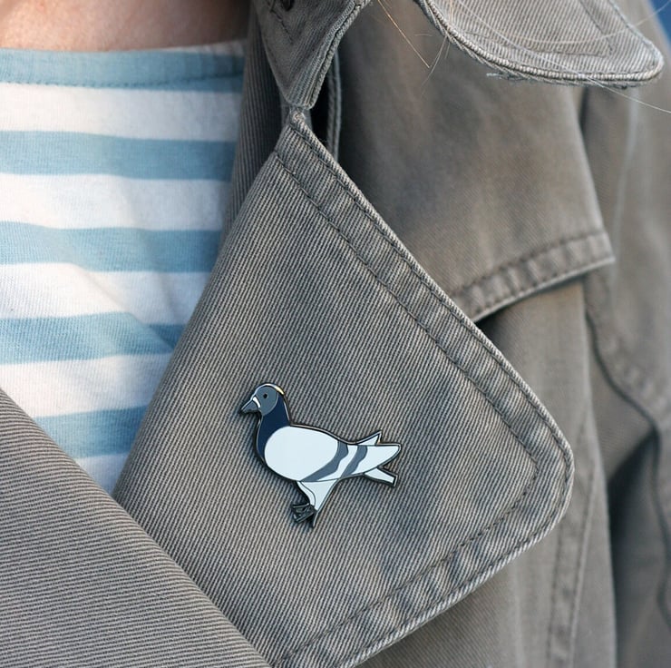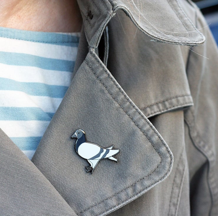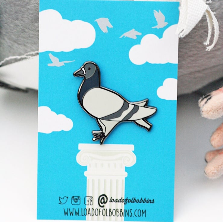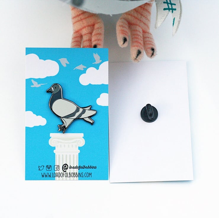 A much maligned species, a pigeon is a mighty bird and my illustrated friend Fred is a champion of his kind. Fred my pigeon friend has finally been immortalised in glorious hard enamel. So why not grab yourselves your very own pigeon friend to coo sweet nothings in your ear.