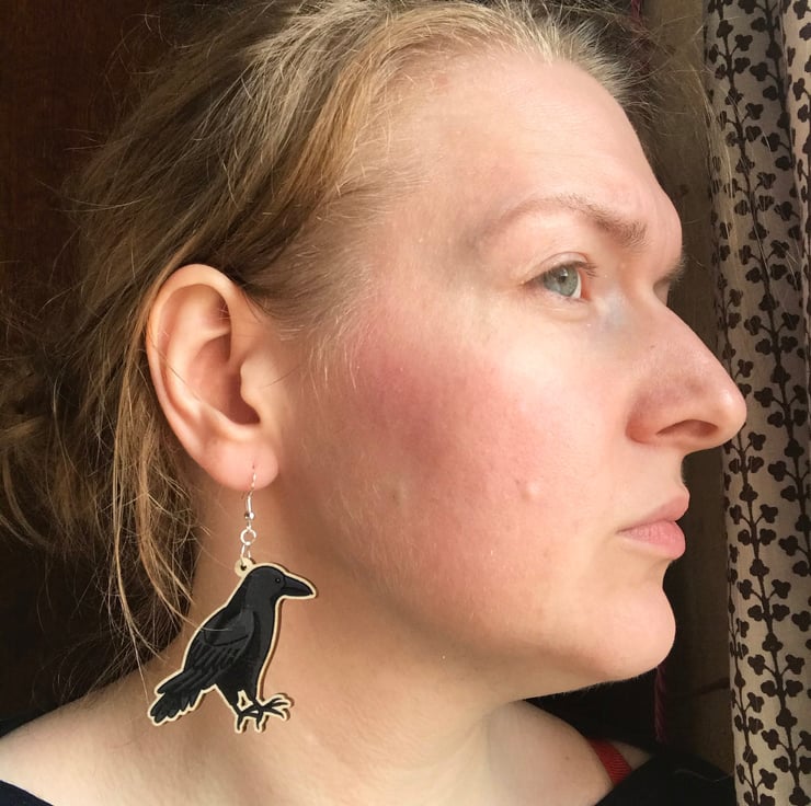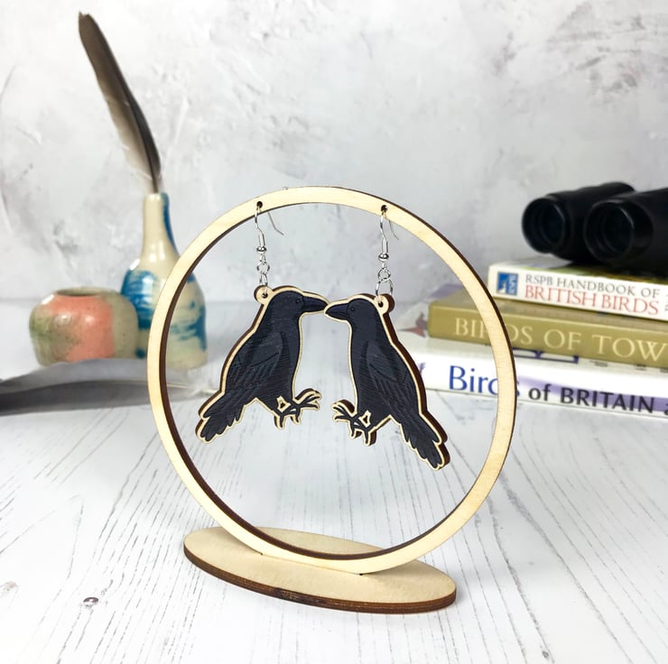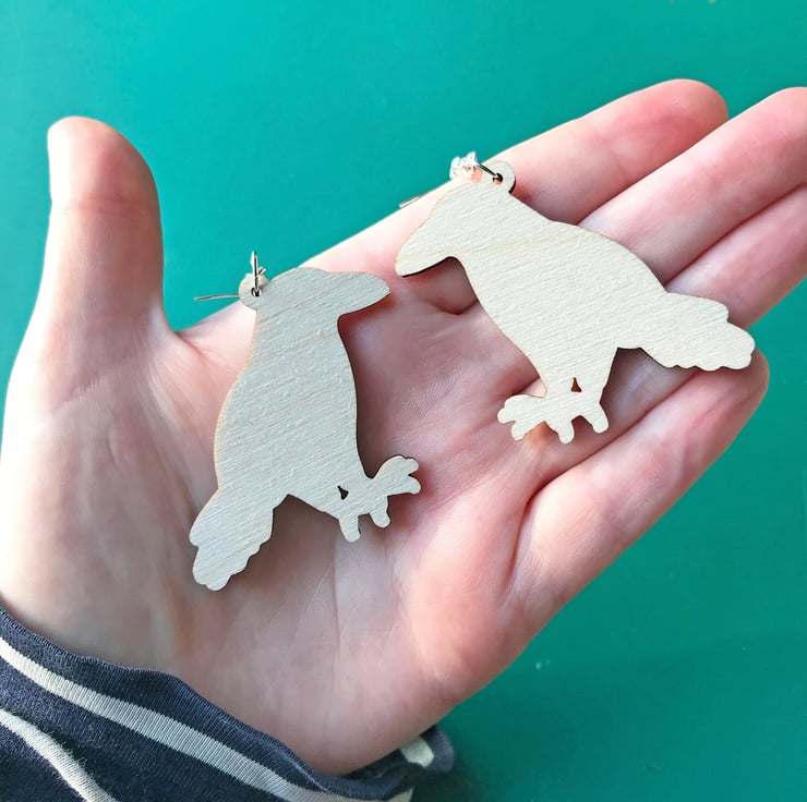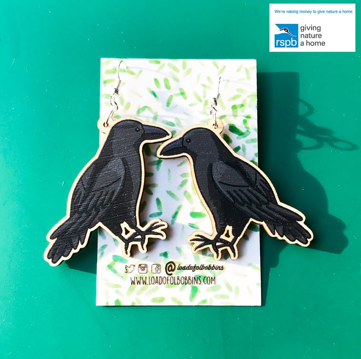These bold wooden crow earrings are from my new 'Birds of a Feather' collection which is inspired by our many feathered garden friends. Taken from my original illustrations these crows are ready to help your lobes make a statement. £1 from each item of the Birds of a Feather collection sold will be donated to the RSPB, a registered charity in England and Wales, number 207076, and in Scotland, number SC037654