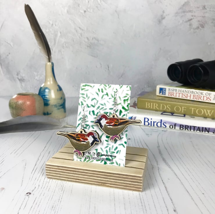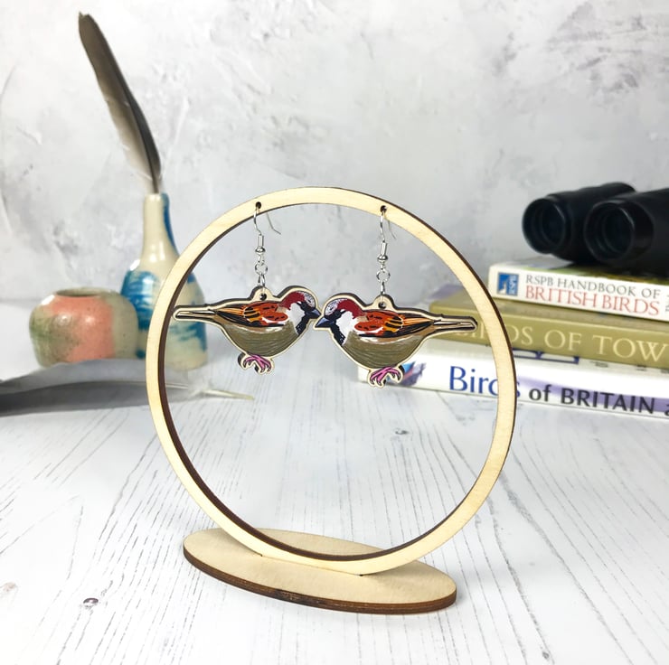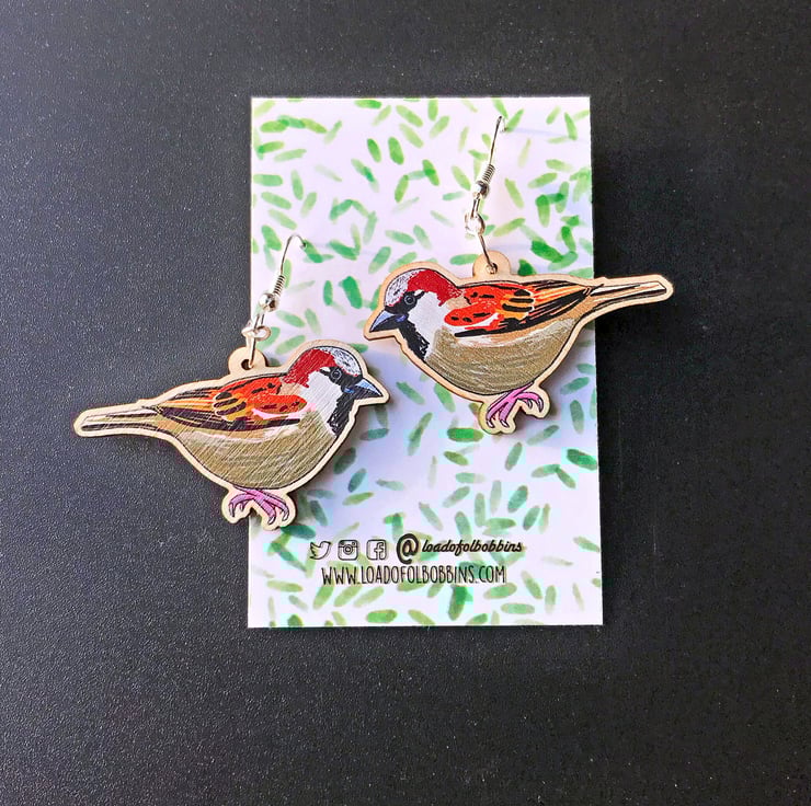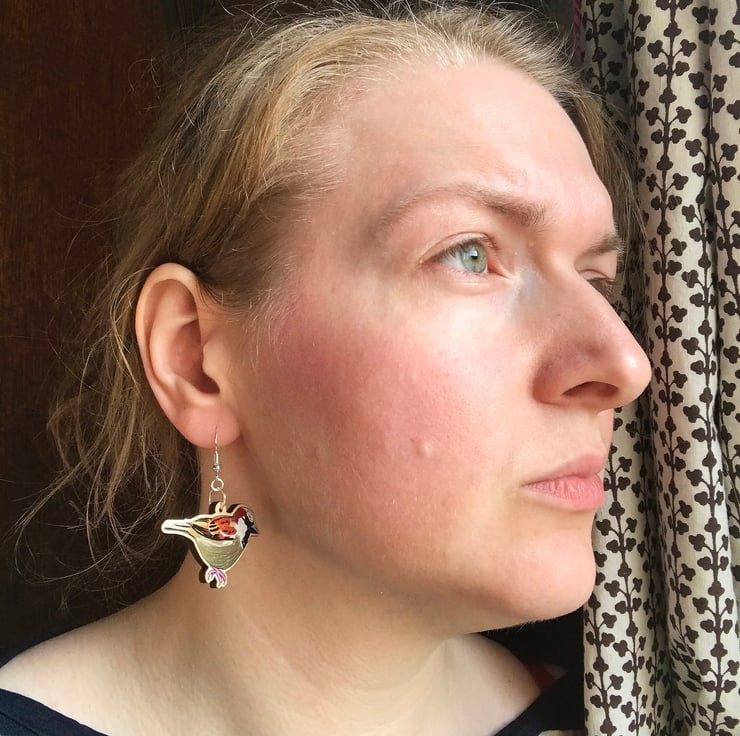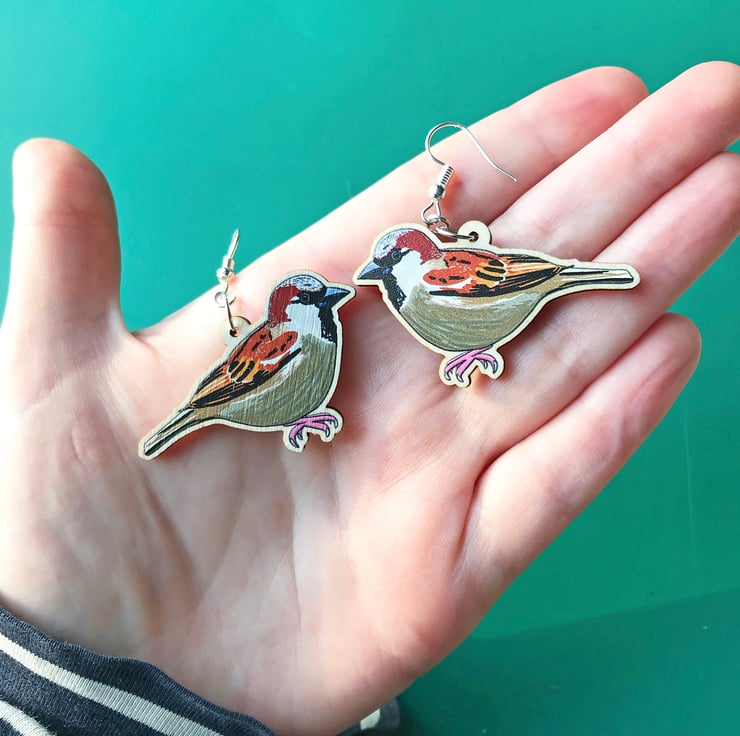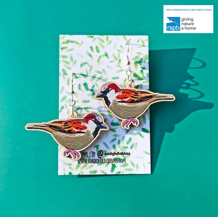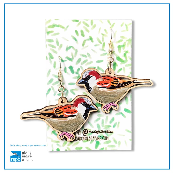This pair of chattering wooden sparrow earrings are from my new 'Birds of a Feather' collection which is inspired by our many feathered garden friends. Taken from my original illustrations these sparrows are ready to happily tweet around your ears. £1 from each item of the Birds of a Feather collection sold will be donated to the RSPB, a registered charity in England and Wales, number 207076, and in Scotland, number SC037654