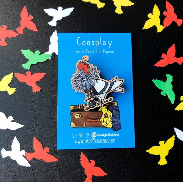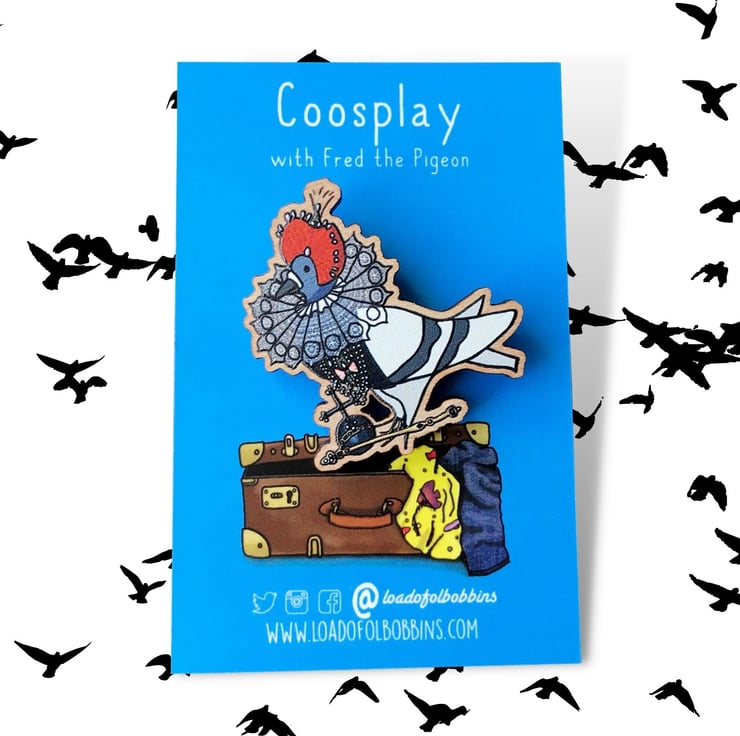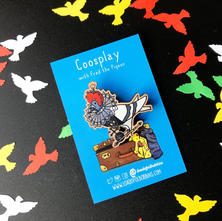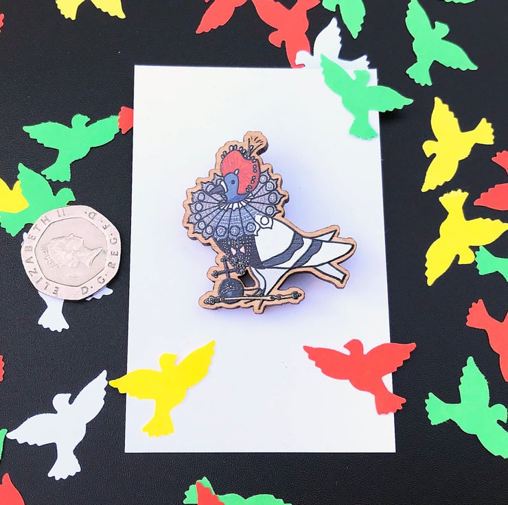 This time my illustrated pigeon friend Fred is making a right royal entrance as Elizabeth I. From my original illustrations I have created a range of fun brooches, perfect for fans of pigeons or anyone who likes a chuckle.
