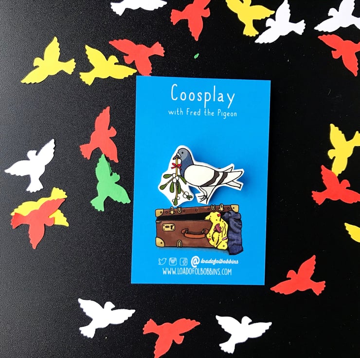 Always keen to spread a bit of Christmas Cheer my pigeon friend Fred has a lovely sprig of mistletoe in his beak! From my original illustrations I have created a range of fun brooches, perfect for fans of pigeons and the festive season alike. This is an end of line item.