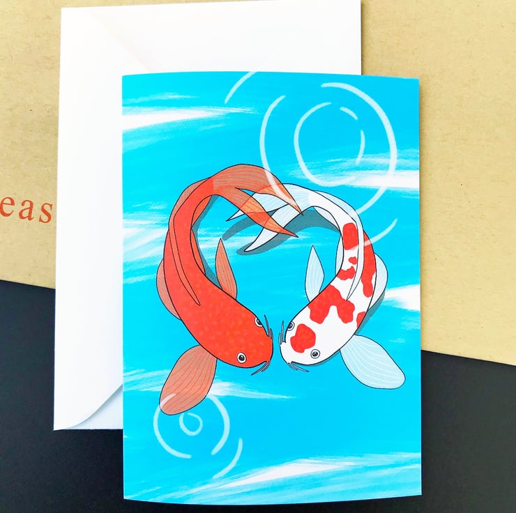 This pair of koi fish have found love together in their pond, a perfect card to give to anyone special in your life!