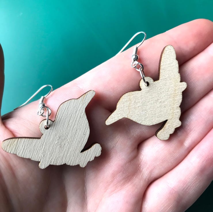 Each brooch is made from responsibly sourced 3mm European Birch Plywood. The findings are silver plated metal findings, each earring is approx. H - 3 cm (1.2") W - 3.8 cm (1.5").