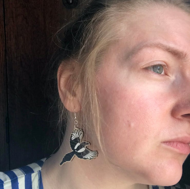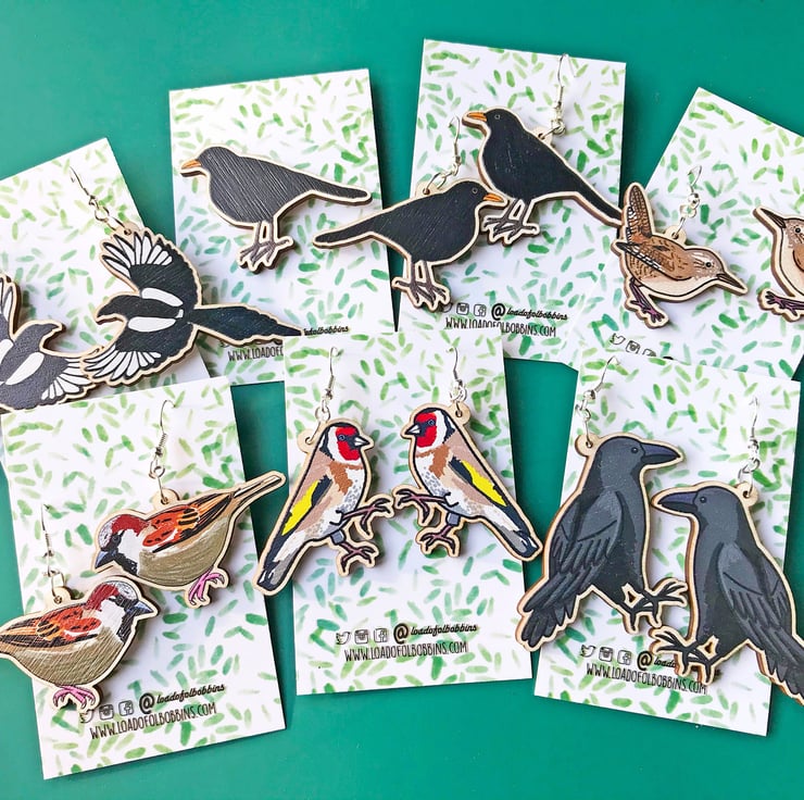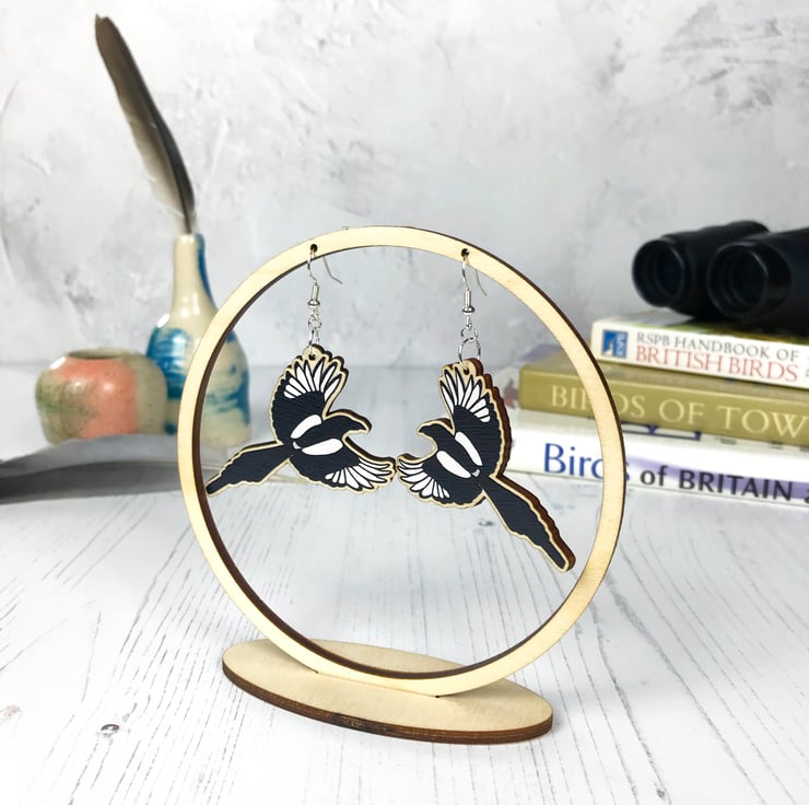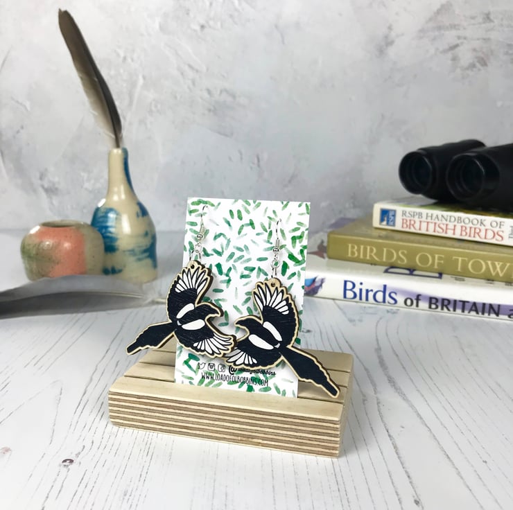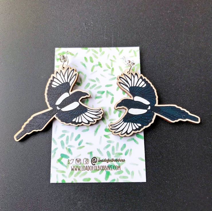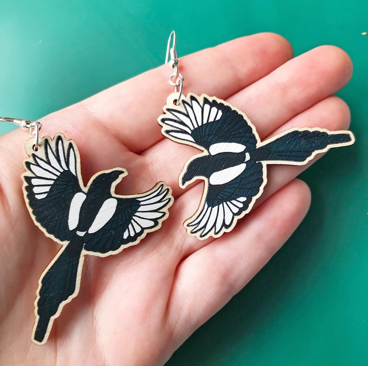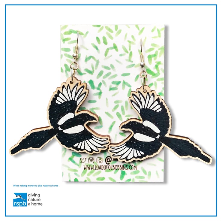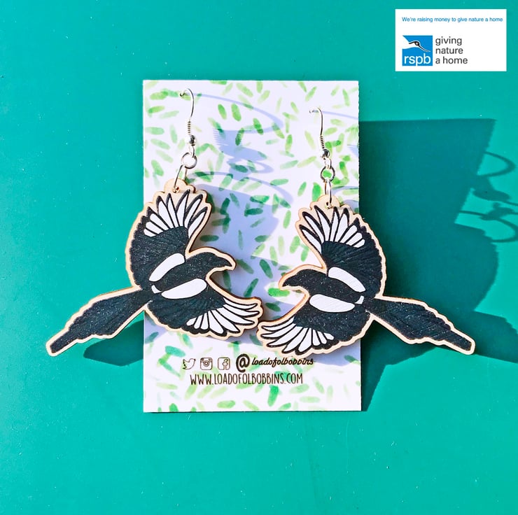 This pair of flying magpie dangle earrings are from my new 'Birds of a Feather' collection, inspired by our many feathered garden friends. Taken from my original illustrations these magpies are ready to lovingly fly around your lobes. £1 from each item of the Birds of a Feather collection sold will be donated to the RSPB, a registered charity in England and Wales, number 207076, and in Scotland, number SC037654