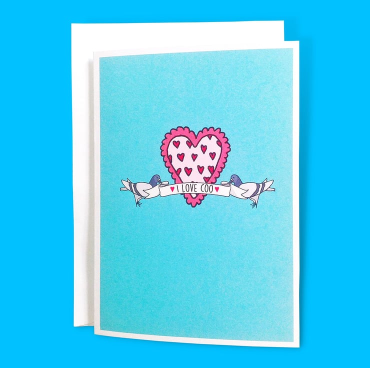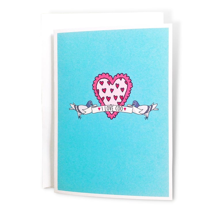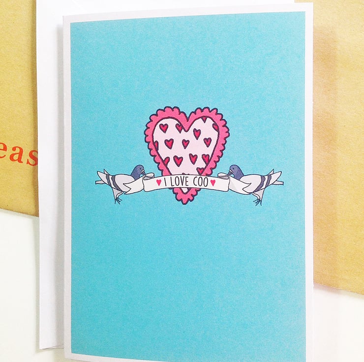 In this A6 illustrated card my pigeon friend Fred is ready to help send a message of love to your special someone!