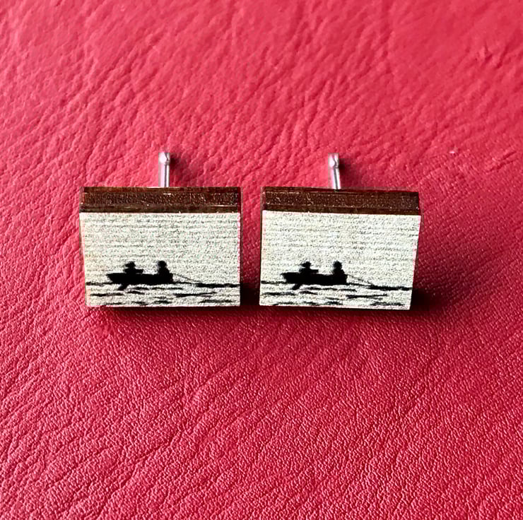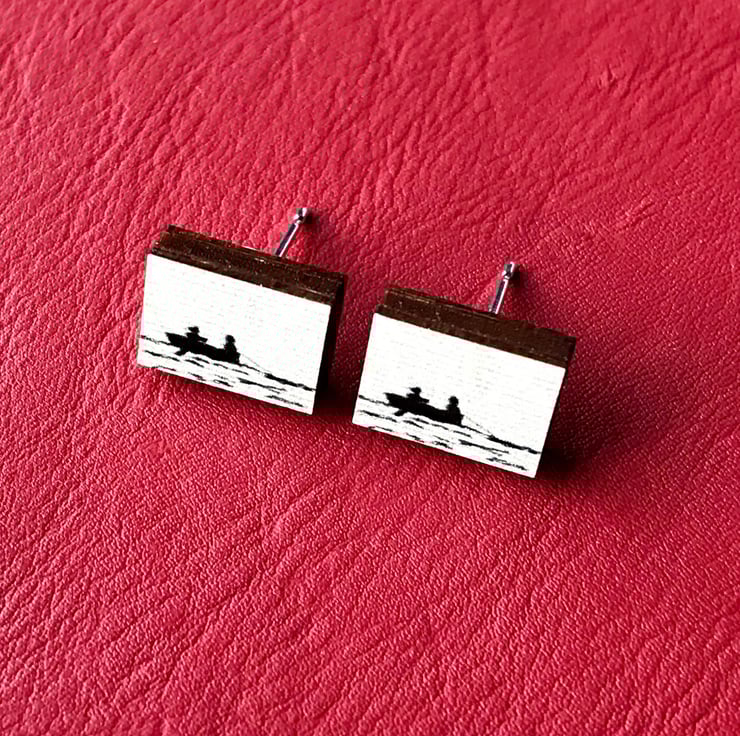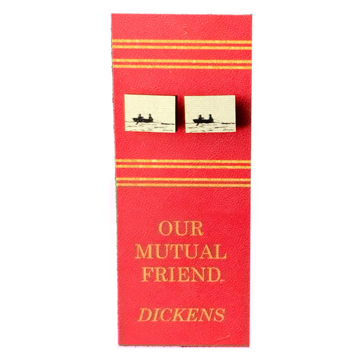 This cute pair of wooden studs show poor Lizzie Hexam undertaking a grim job for her father at the beginning of Charles Dicken's classic novel Our Mutual Friend. The images are created from my original embroidered illustrations, this range of earrings are perfect for book lovers like myself. They'd make a lovely gift or maybe even a treat for yourself!